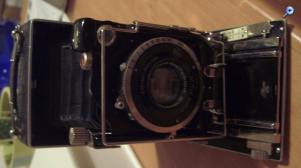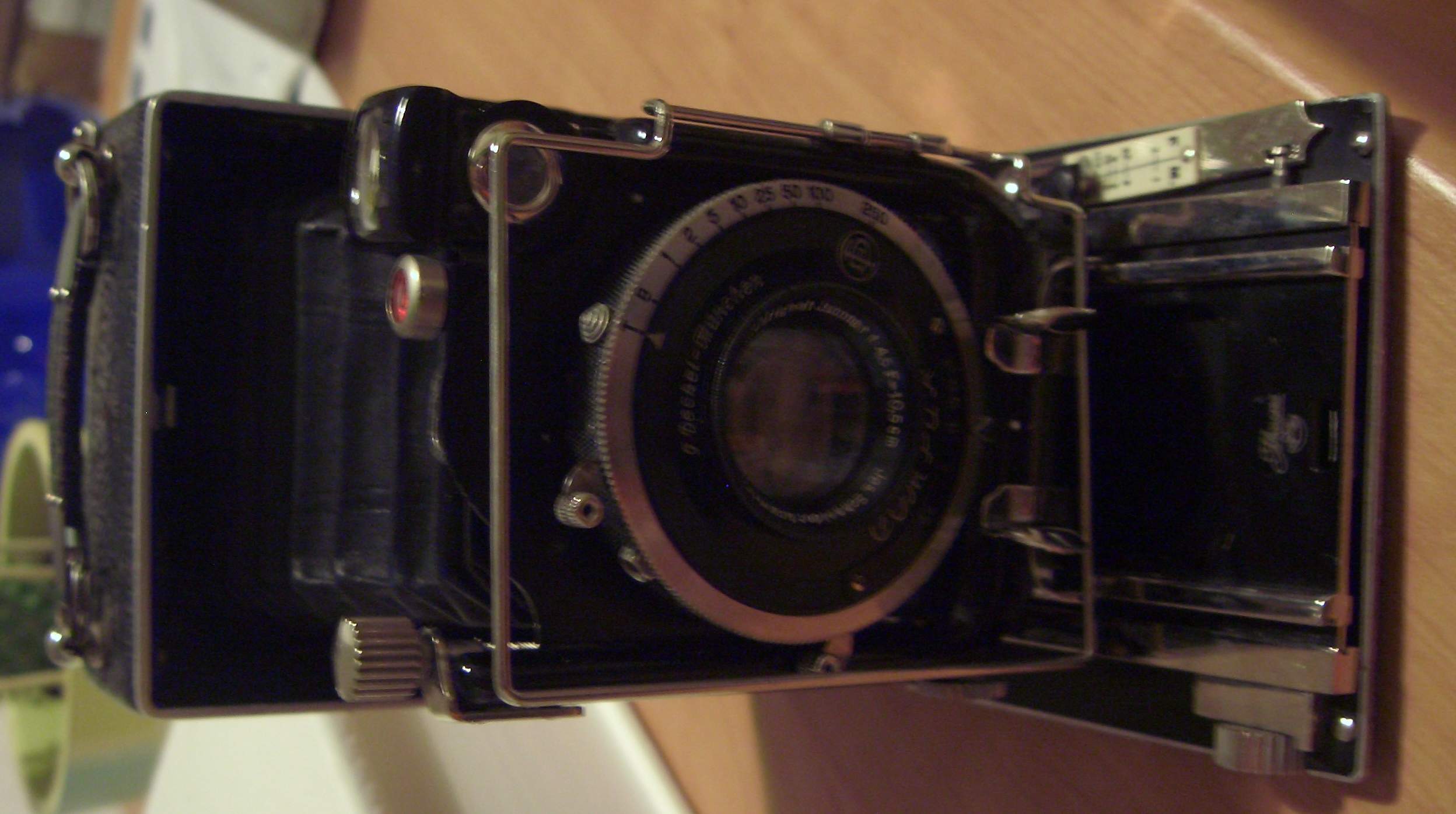 Ich habe letzte Woche über ein Inserat eine Kamera gekauft zum "Taschengeldpreis".Die Angaben des Verkäufers waren dürftig da er die Kamera nicht aufbekommen hatte.So kannte ich nur den Namen Ihagee vorher...und habe einfach mal ins BLAUE gekauft. Es müßte eine "Ihagee Duplex" sein mit 6,5cm x 9cm eine echt schöne kleine Kamera in einem tollen Zustand.Soviel ich bisher rausgefunden habe gebaut von 1920 bis 1939.Die Tasche habe ich mit Ledercreme wieder schön hinbekommen und auch ein kleiner Pappkarton war in der Tasche.Es fehlt anscheinend die Mattscheibe und eine Lamelle hing etwas runter.aber mit etwas hin und her gehts jetzt soweit erstmal. Die Zeiten laufen sogar noch ab in den jeweiligen Einstellungen ..nettes kleines Klackern.