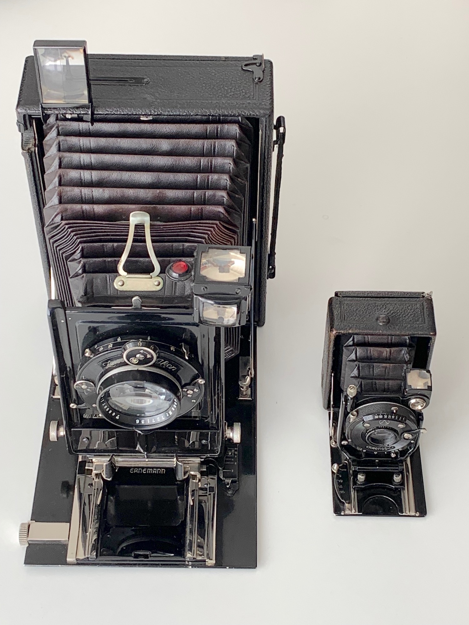Besonders eindrucksvoll ist der Größenvergleich mit einer 13x18-Kamera, hier der Heag XI.