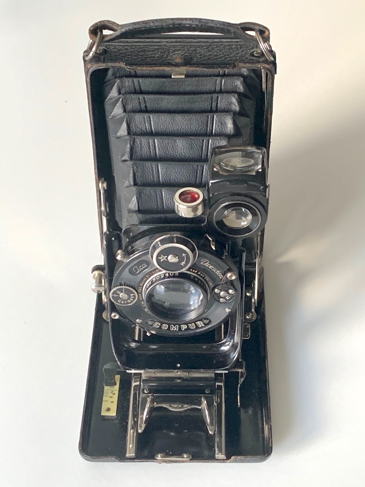 Das kann ich nicht völlig ausschließen – das wäre immerhin eine mögliche Erklärung für die gute Bestückung. Dann könnte es eine zeitgenössische Modifikation (ab Werk?) sein, denn das Baujahr des Tessars passt zu dem der Kamera, und der Compur (lt. Seriennummer um 1920) ist mit Ica gekennzeichnet. Dann stellt sich allerdings die Frage, warum man einen Export-Verschluss gewählt hat. Ach ja, das habe ich ganz vergessen: Auf der Entfernungsskala sind Meter-Angaben. – Es ist sicherlich keine spätere Laien-Bastelarbeit, am Konterring sind jedenfalls keine Spuren zu erkennen.