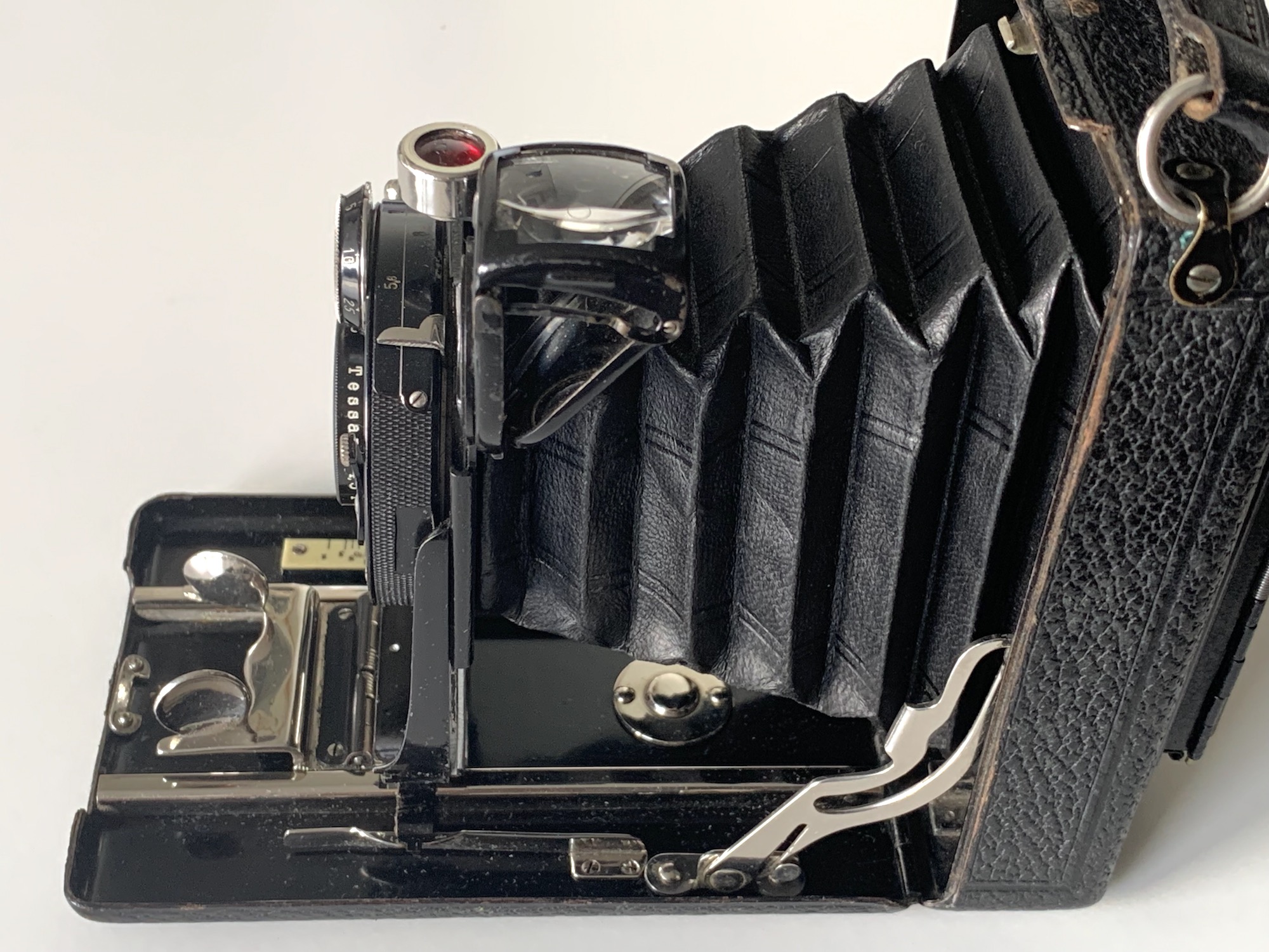 Möglicherweise handelt es sich also um ein Exportmodell, das in deutschen Katalogen nicht gelistet war. Dann wäre aber anzunehmen, dass ein vorhandenes Modell modifiziert wurde. Eine Kamera mit gleichem Gehäuse ist mir aber nicht bekannt. Unklar auch, warum man ein so simples Modell mit Tessar in Compur ausgestattet hat...
