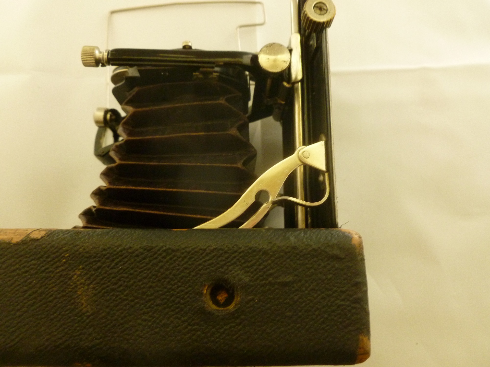 für mich wirkt die ganze Kamera sehr grobschlächtigt da alles sehr einfach ausgefürt ist, z.B. der Auszug ist nur mit einer auf dem Laufboden angebrachtem Federblech arretierbar.