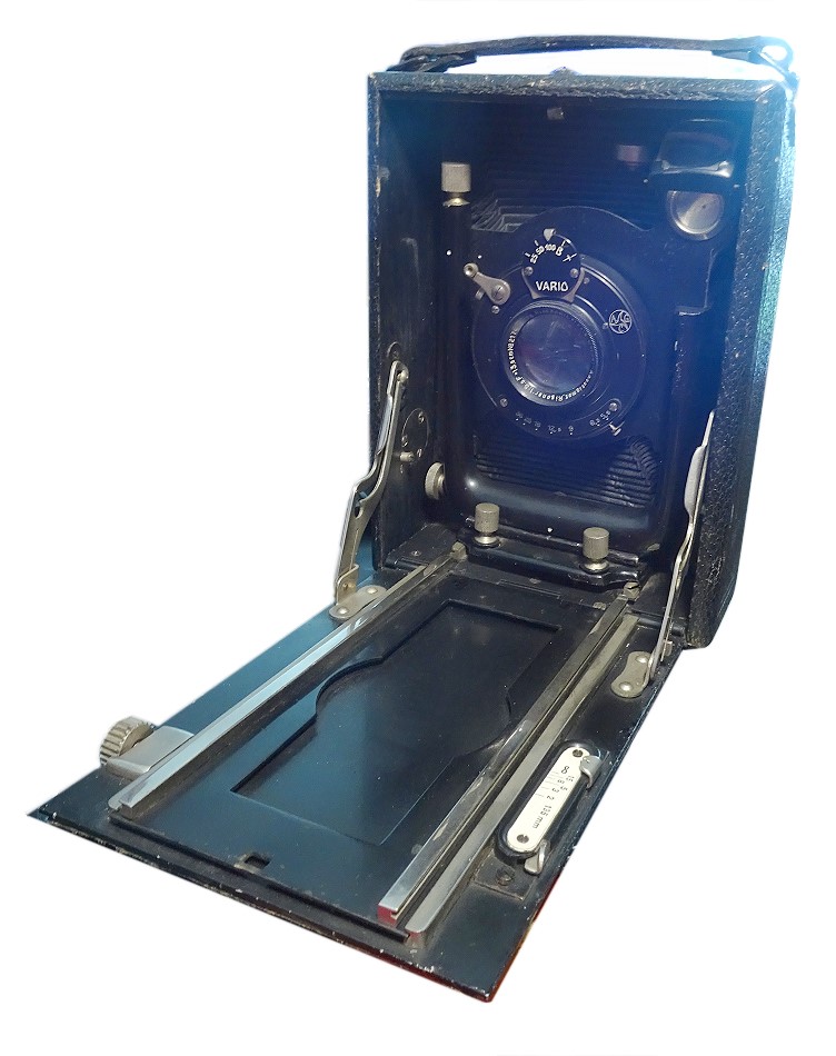 die hier vorgestellte Plattenkamera konnte ich noch keinem Hersteller zuordnen. Ich bin auch nicht sicher, ob der Objektiv-Hersteller Knoll die Kamera gebaut hat. Wird eher ein Objektiv-Zukauf sein. Ist also noch Forschungsbedarf.