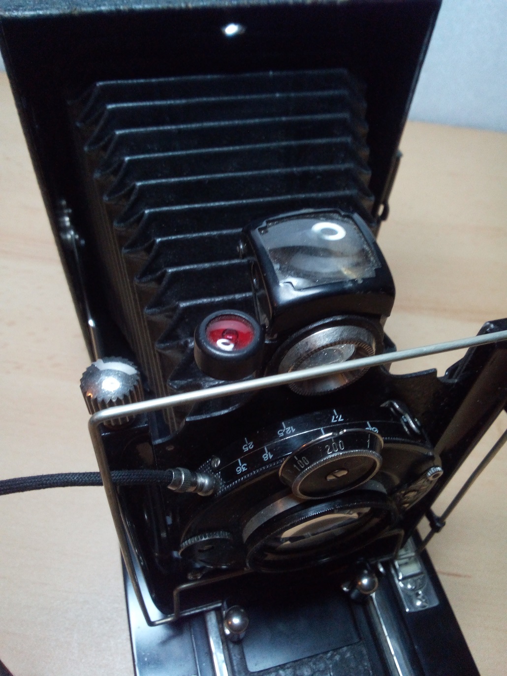 schön! Ich tippe auf eine Certosport. Andere Certo-Modelle haben z. T. Balgenspanner, andere Verstellmechanismen, Bedienungselemente, keinen Rahmensucher usw. Bei Kerkmann wäre es die Nr. 0352. Kadlubek gibt als Zeitraum für dieses Modell 1925–1930 an; da ein Rad-Compur verbaut ist, dürfte sie eher 1925 als 1930 gebaut worden sein.