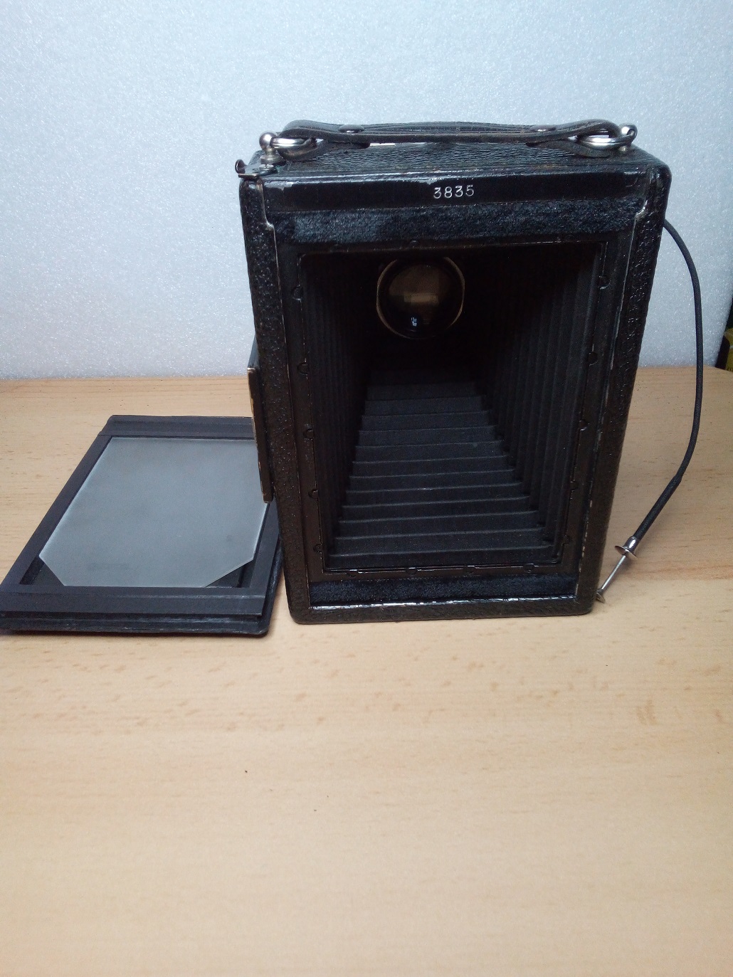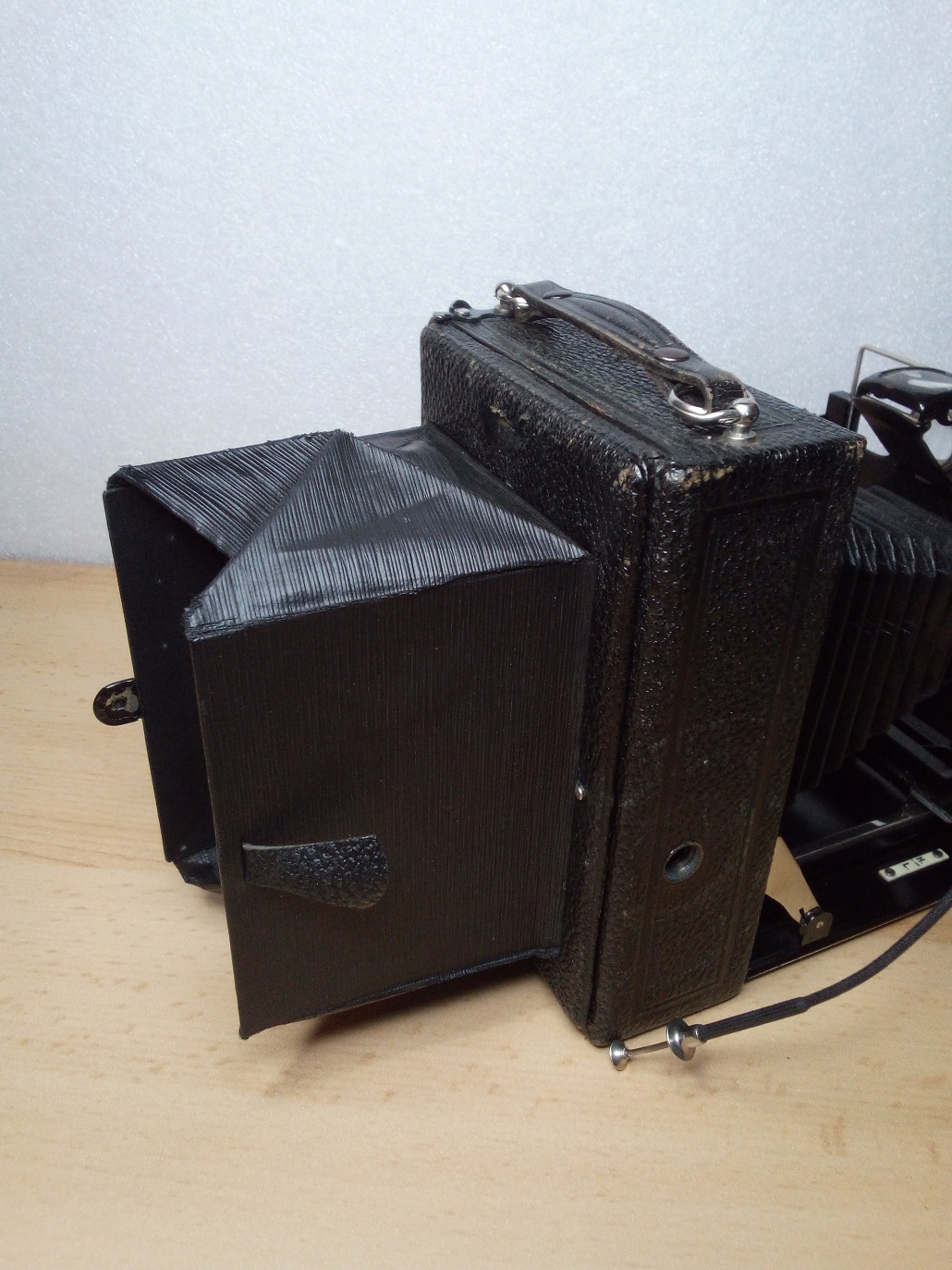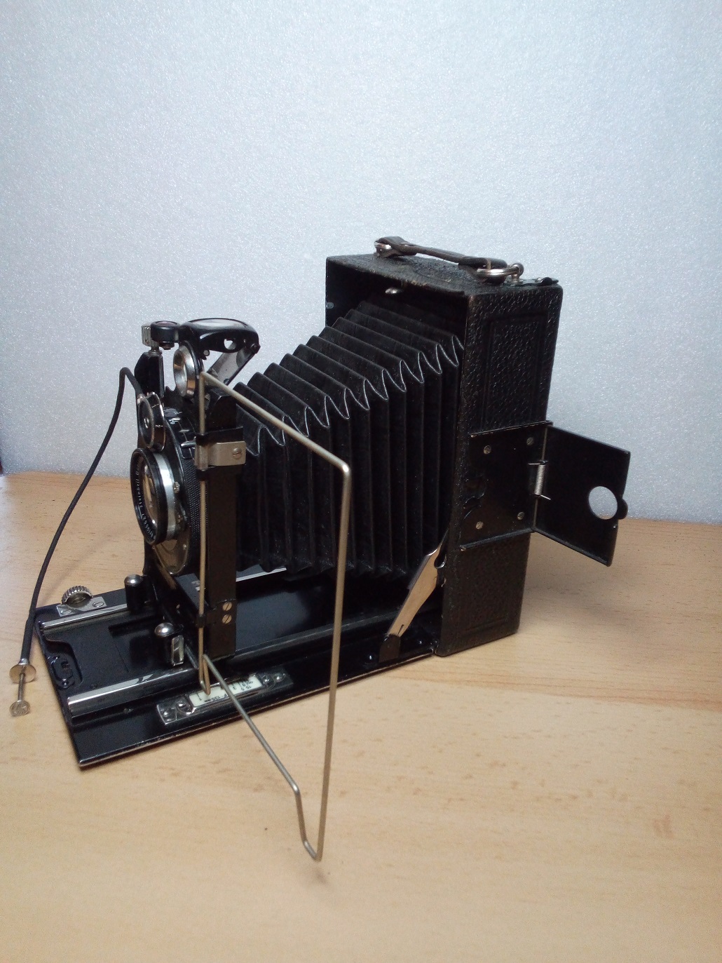Ergänzung: Dank des Hinweises von Jan und einem Angebot auf ebay Kleinanzeigen kann man davon ausgehen, dass es sich bei der gezeigten Kamera um eine CERTO Certosport 9 x 12 handelt.
