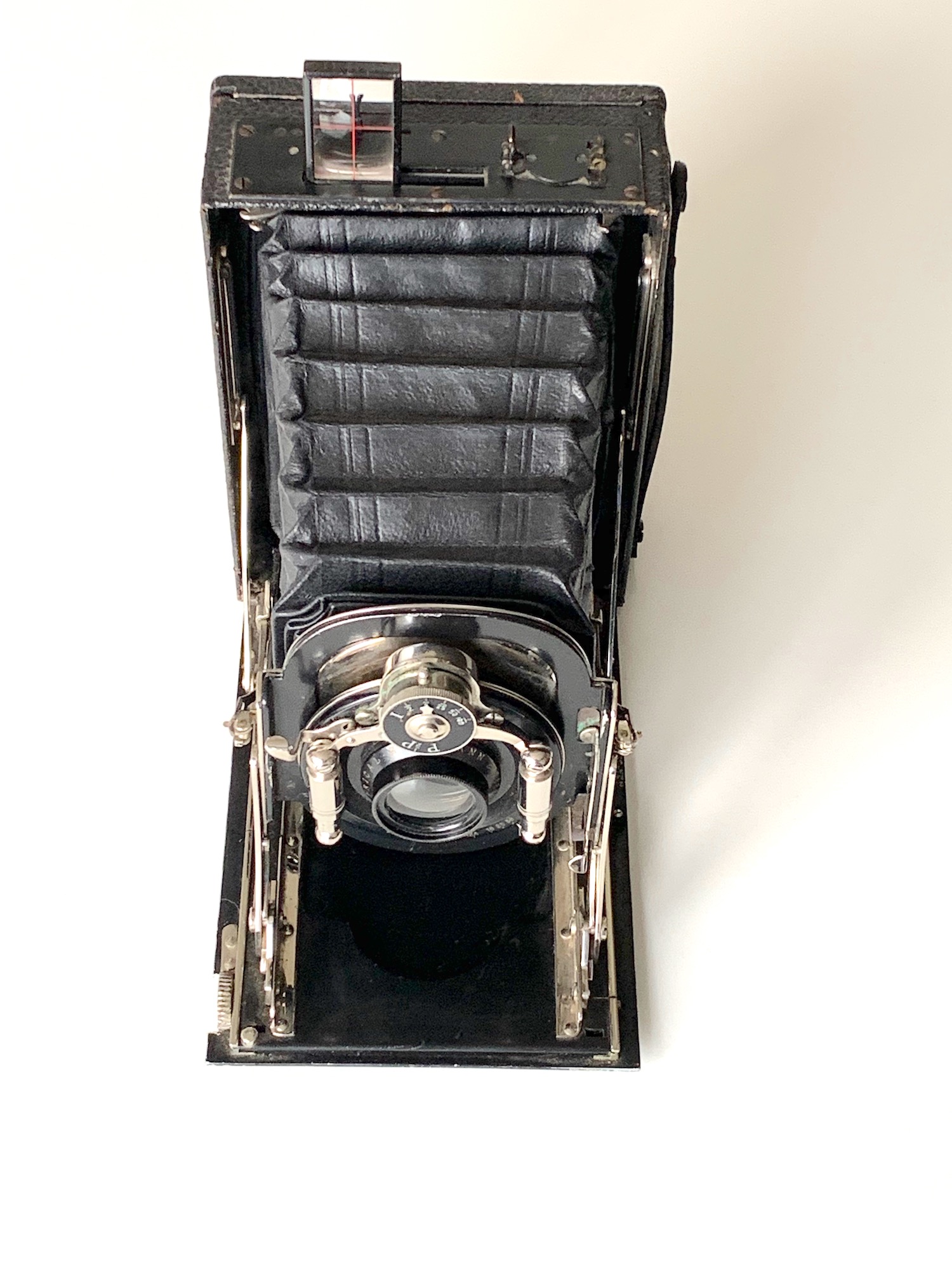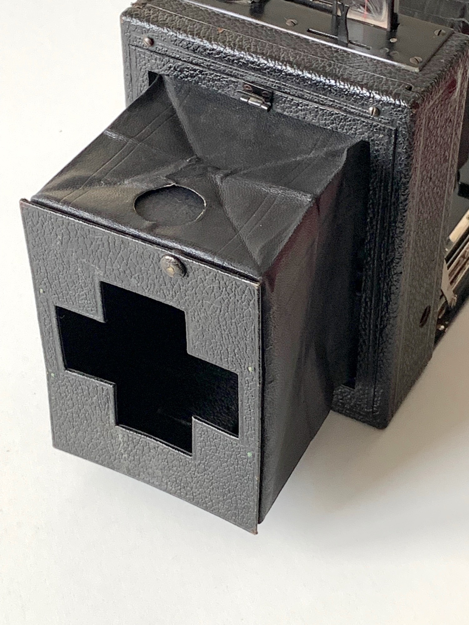 Angesetzt ist ein Rückteil mit dem typischen frühen Ernemann-Lichtschacht mit kreuzförmigem Einblick.