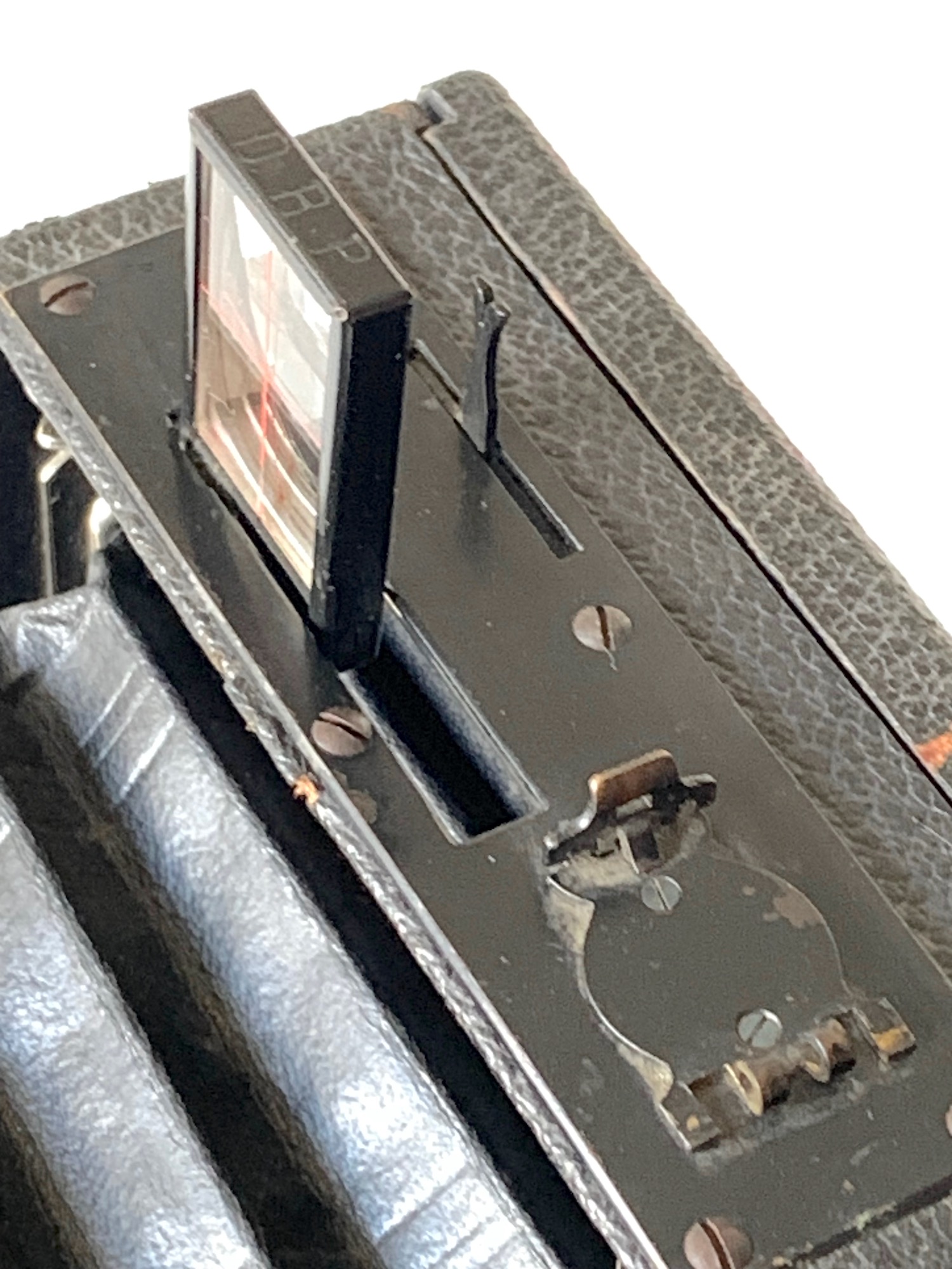 eine sehr spannende Kamera! Ein Vergleich mit anderen Exemplaren der Heag XV im WWW legt nahe, dass sich an der oben genannten Stelle eine klappbare Libelle befand.