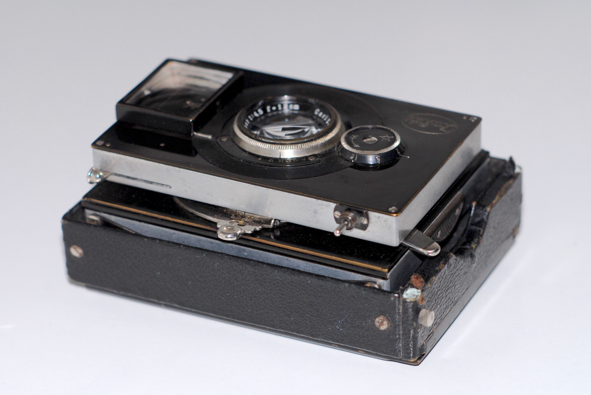 Ganz so klein ist sie nicht mehr. – Es handelt sich um eine Spreizenkamera für Platten (bzw. Packfilmkassette), die 1912 mit der Integration von Zulauf in das Ica-Programm aufgenommen wurde. Die Entfernung wird mittels Schneckengang über einen Hebel eingestellt; Die Skala ist von oben ablesbar. Der ∞-Anschlag kann je nach Verwendung von Platten oder Film verstellt werden. Die Blendenverstellung erfolgt durch Drehen des Rings um die Objektivfassung.