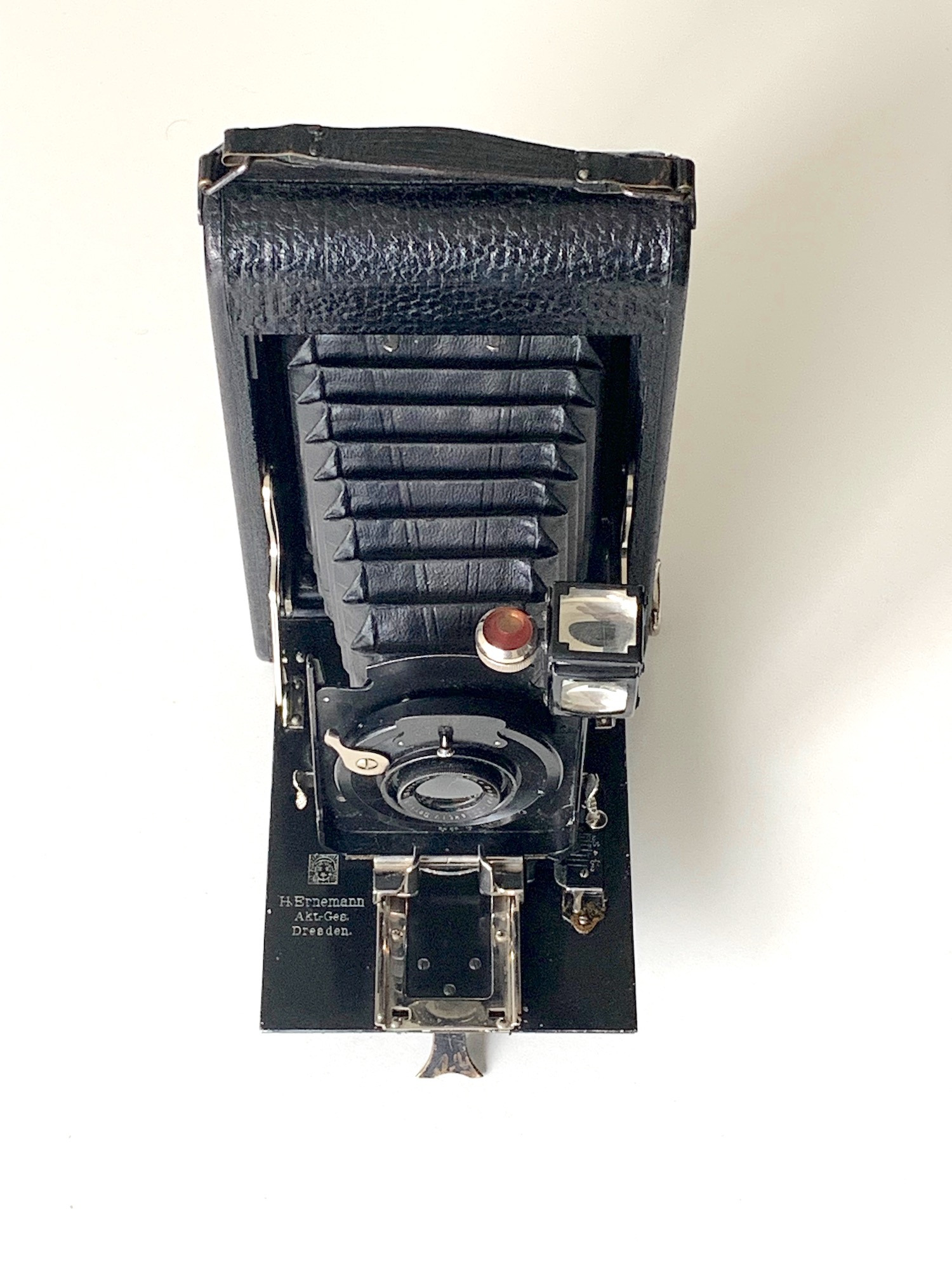 Das vorliegende Exemplar zeigt als Warenzeichen die Ernemann-'Lichtgöttin', daher dürfte es vor 1921 gebaut worden sein.