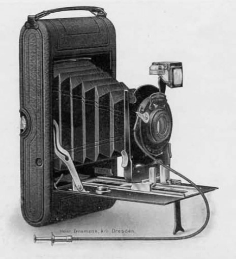 in den Ernemann-Katalogen 1912 und 1914 werden Bob 0 Modelle gezeigt, interessanterweise immer mit Drahtauslöser und Hinweis auf "Bob Patent-Auslöser". Ich nahm an, dass der Drahtauslöser fest moniert ist, scheint aber nicht so zu sein?