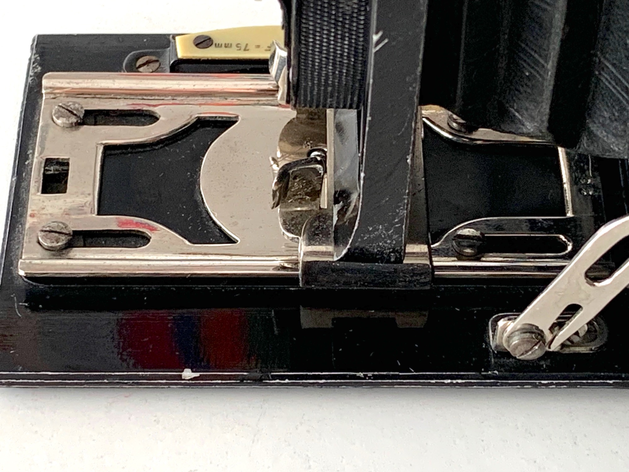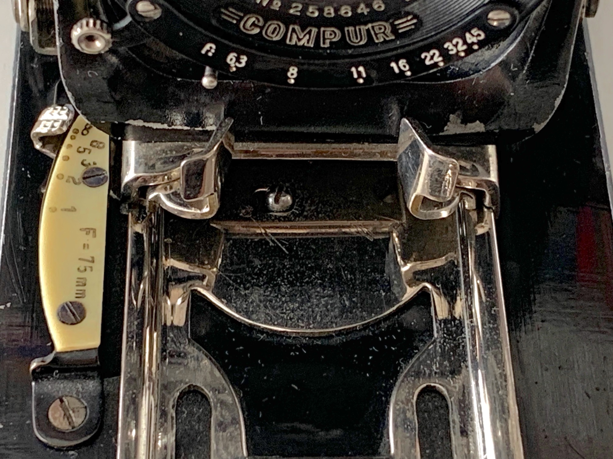 hier ein Neuzugang, eine unbezeichnete Laufboden-Plattenkamera im 4,5x6, die ich vorstellen möchte und und bei deren Bestimmung ich auf Hinweise hoffe.