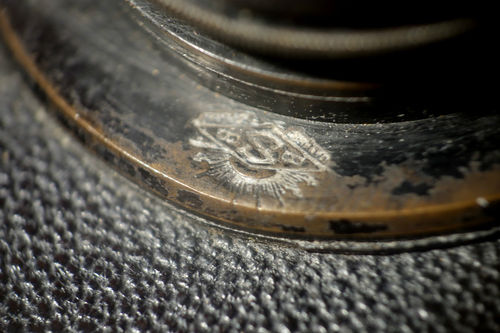 Hallo, auf einer alten Kastenkamera mit Fotoplattenmagazin habe ich ein Herstellerlogo gefunden, das ich leider nicht zuordnen kann. Vielleicht kennt es ja jemand :-)