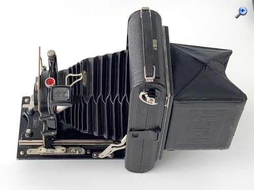 Nixe war die Bezeichnung einer lange gebauten Reihe großformatiger Laufbodenkameras für Platte oder Rollfilm. Die Bezeichnung wurde erstmals von Erich Wünsche (Dresden) verwendet; entsprechende Kameras wurden 1909 ins Programm der Ica übernommen und weitergeführt und wurden 1926 auch Bestandteil des Programms von Zeiss Ikon. Hier sei eine späte Nixe im 'kleinen' Format 8x10,5 (international auch als Nixe A bezeichnet) vorgestellt, die 551/17. Aus der Nummer ergibt sich schon, dass dieses Exemplar nach der Reform des Bestellnummernsystems gebaut wurde, also nach April 1929.
