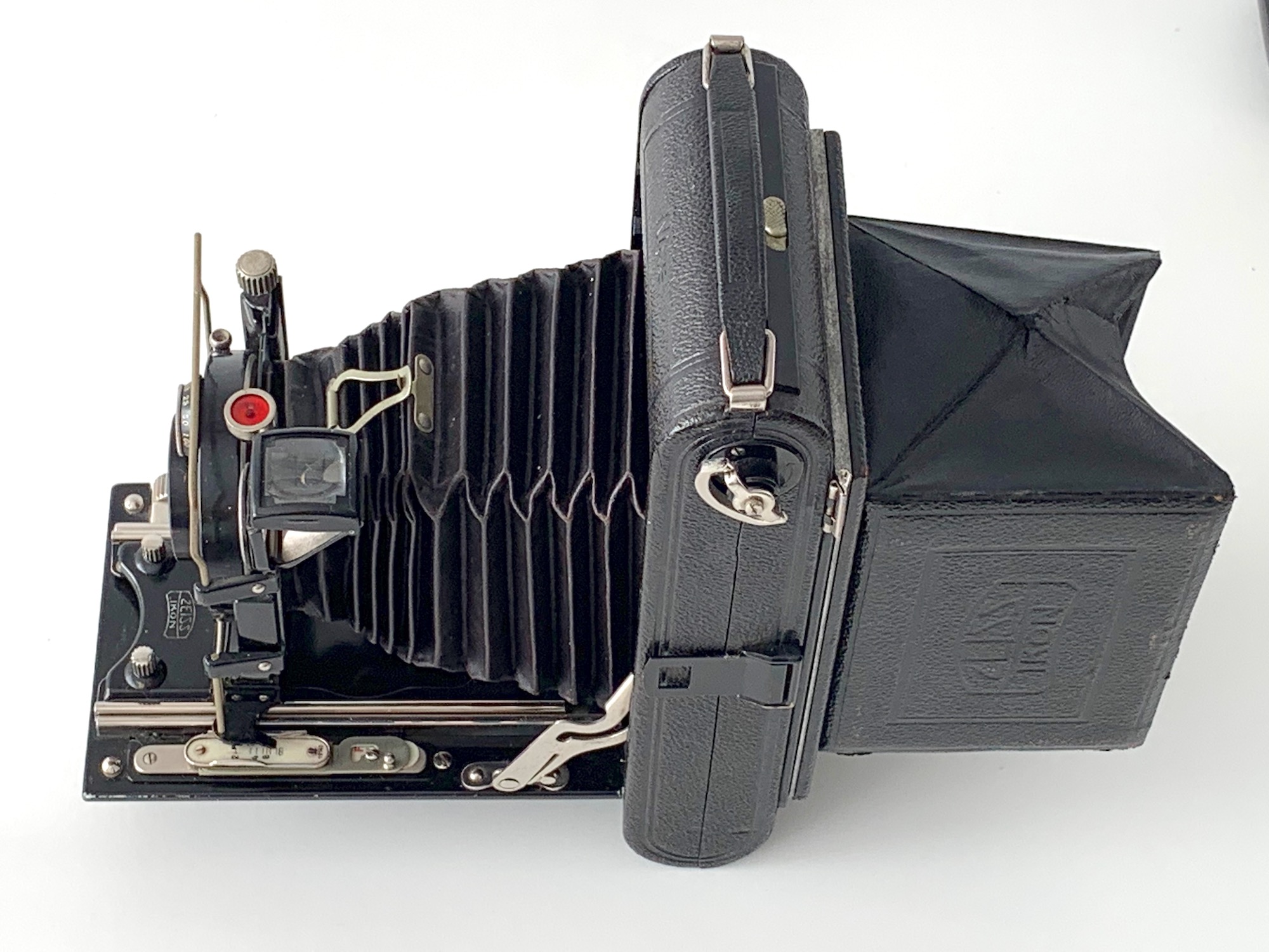 Es handelt sich um eine Laufbodenkameras mit den üblichen Eigenschaften von Plattenkameras: Sie besitzt einen doppelten Ausug mit Zahntrieb, ihr Objektivbrett lässt sich vertikal und horizontal mittels Spindeltrieb verstellen, als Sucher stehen Brillantsucher und Ikonometer zur Verfügung. Die Kamera lässt sich wahlweise mit Platten 9x12 oder Rollfilm 118 betreiben; die Entfernungsskala kann entsprechend umgestellt werden.