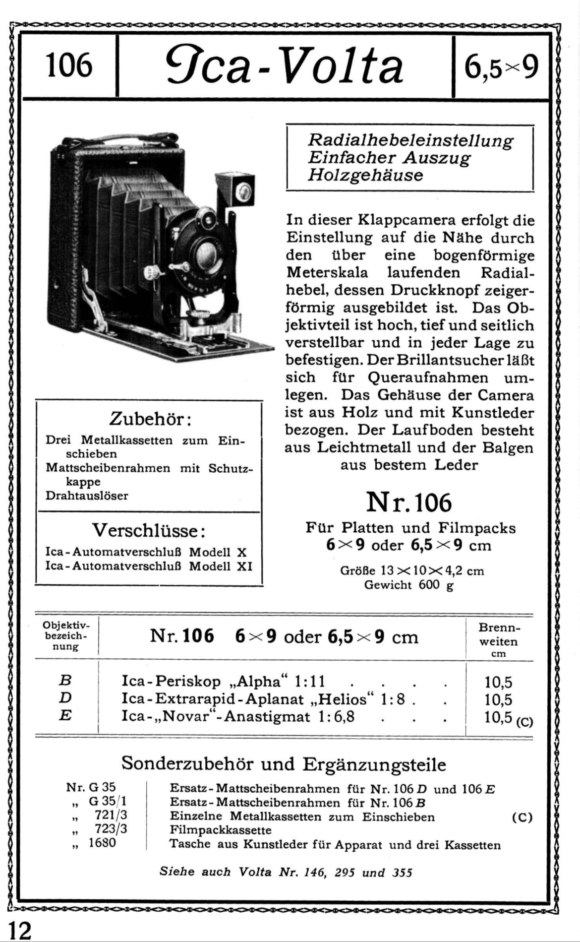 myview-photo:Im Katalog von 1925 sind nur Versionen der Volta mit kleineren Formaten zu finden.