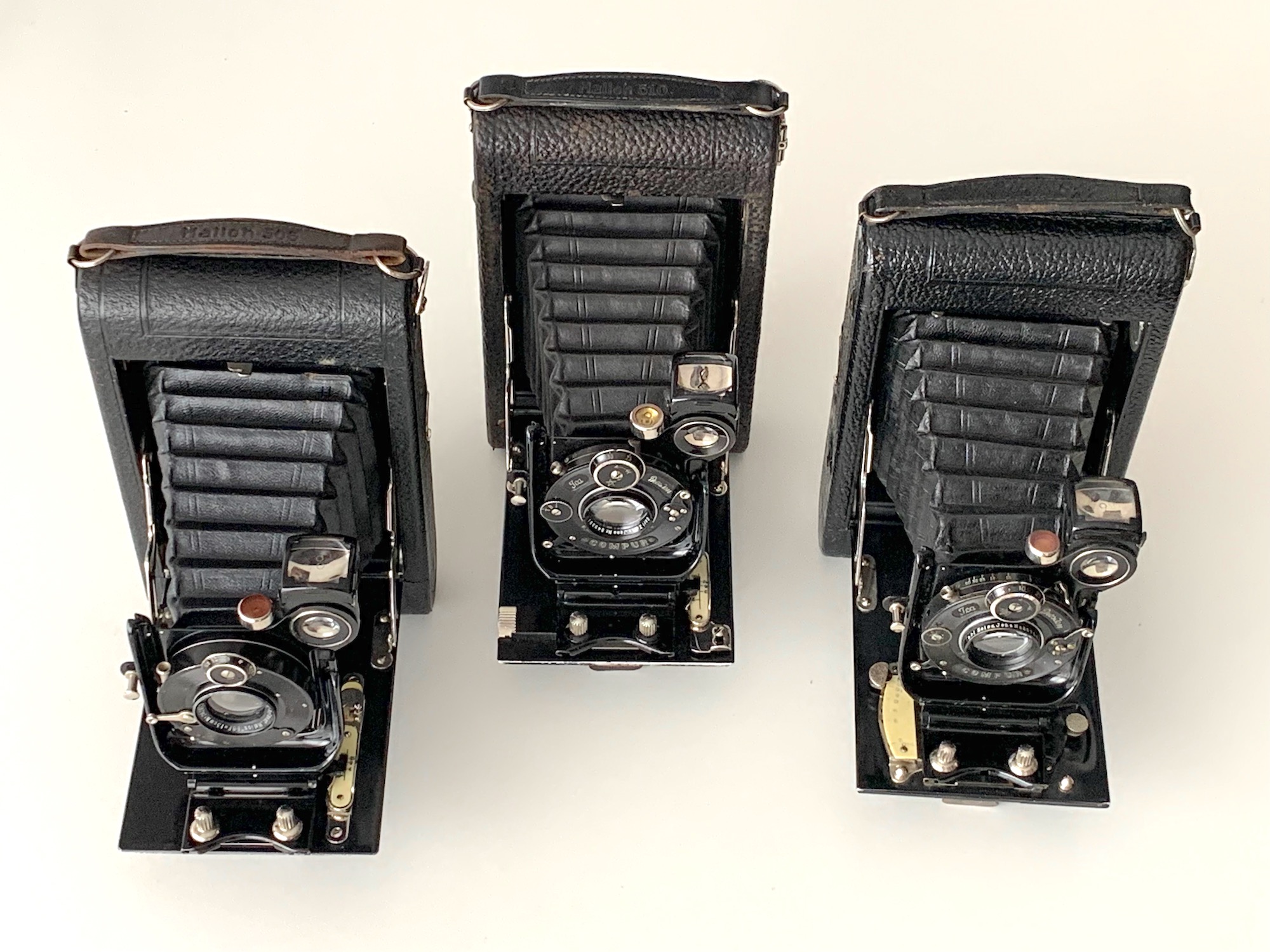Im Bereich der Laufbodenkameras für Rollfilm 8x10,5 (Film 118) oder Platten 9x12 gab es die Nixe-Modelle, die von Wünsche übernommen wurden (s. hier: https://blende-und-zeit.sirutor-und-comp...&thread=243), die Lloyd-Modelle aus dem Hause Hüttig (vgl. https://blende-und-zeit.sirutor-und-comp...&thread=263), und die Fa. Dr. Krügener steuerte die Halloh-Serie bei, von denen hier drei Modelle vorgestellt werden sollen – die Halloh 506, 510 und 511.