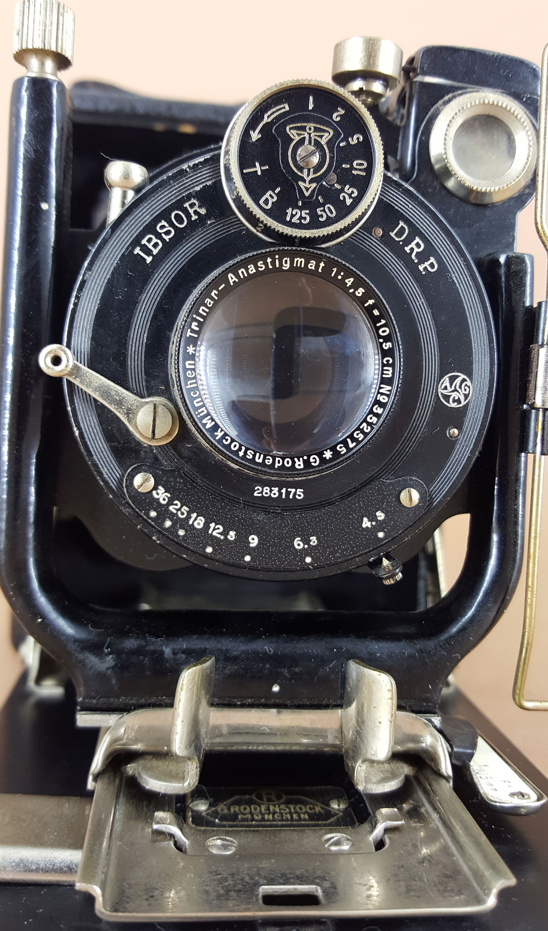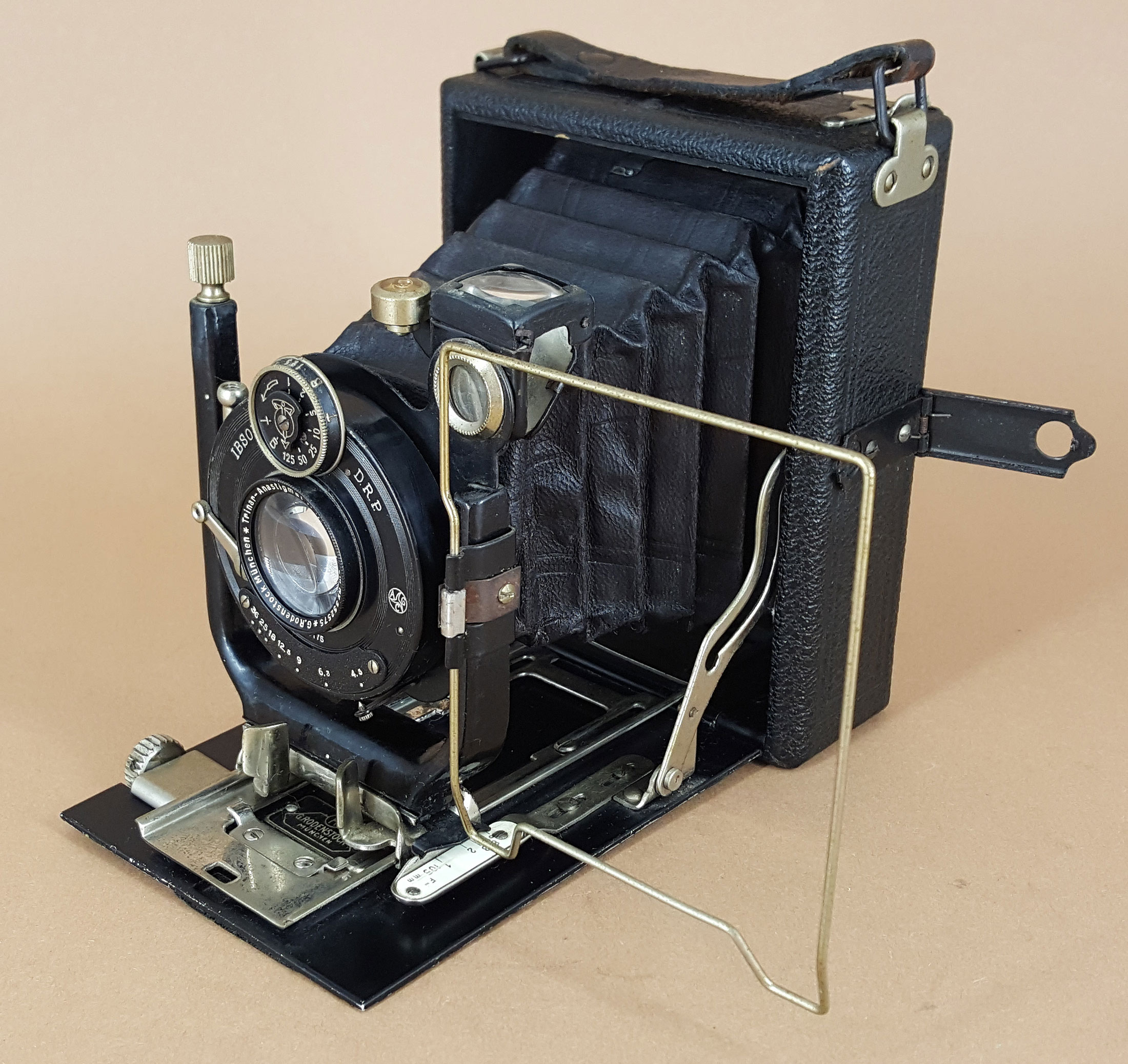PS: Im Onlineverzeichnis der Plattenkameras findet sich eine Rodenstock Rofina Mod. 1. Die Kamera ist mit Rhaco gelabelt. Rodenstock hat aber selbst keine Kameras gebaut (auch nicht für Rhaco). Außerdem war die Rofina eine Rollfilmkamera für das Format 4x6,5, was auch nicht zur Brennweite des angegebenen Objektivs passt. Für mich sieht diese (schlecht zu erkennende) Kamera wie eine Zeca (Modell 3) aus.