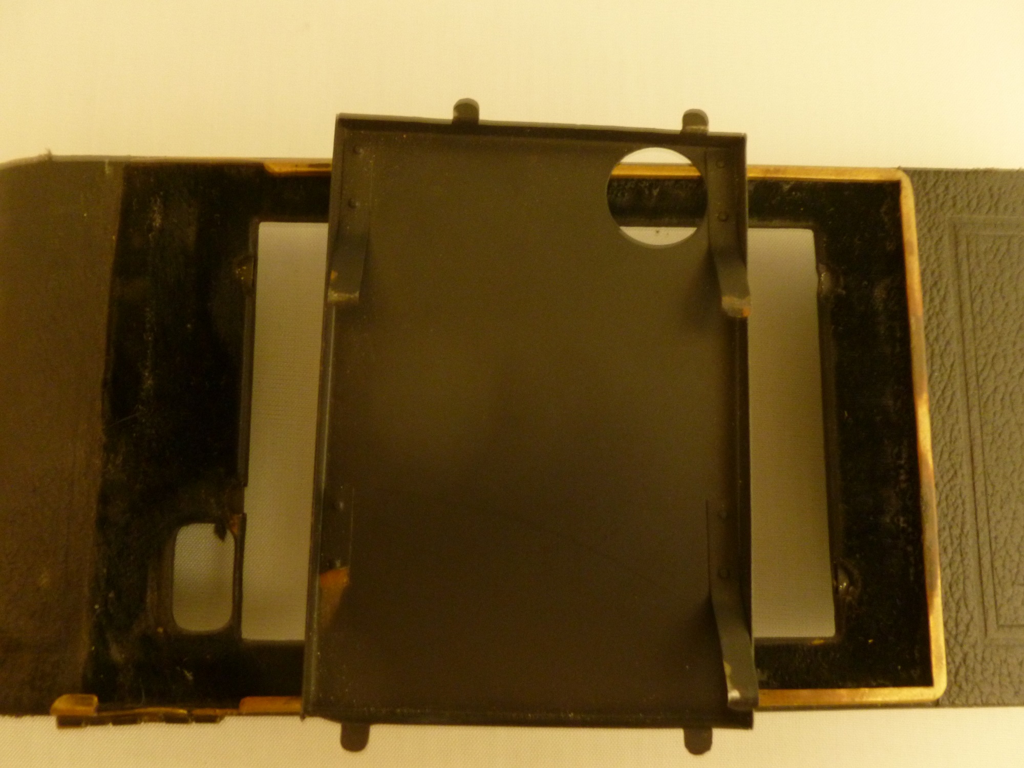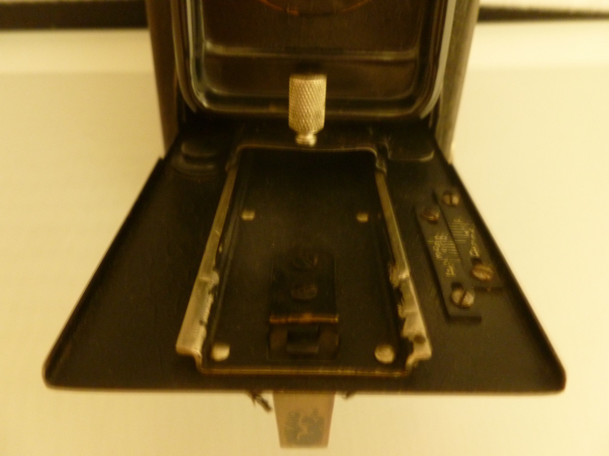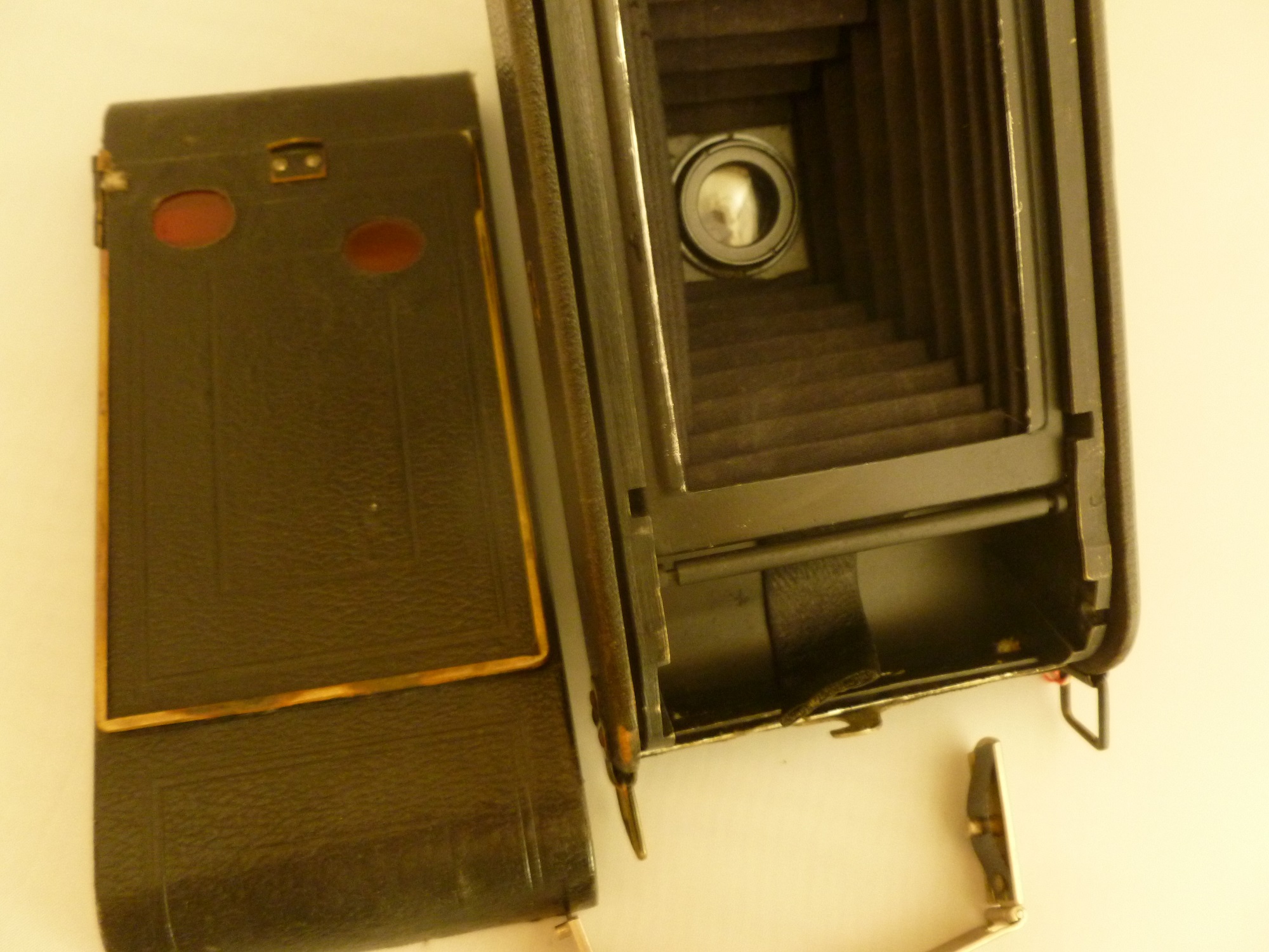 auf den Bildern kann man ja erkennen das es eine Kombikamera Film/Platte ist Rollfilm 120 2 Entfernungsmarken einmal RF einmal Platte eifacher Auszug herausnehmbare Spulenhalter 2 verschiedene Lacke Auszug samtiger wie die anderen Metallteile im Gehäuse eine Nummer 1115321