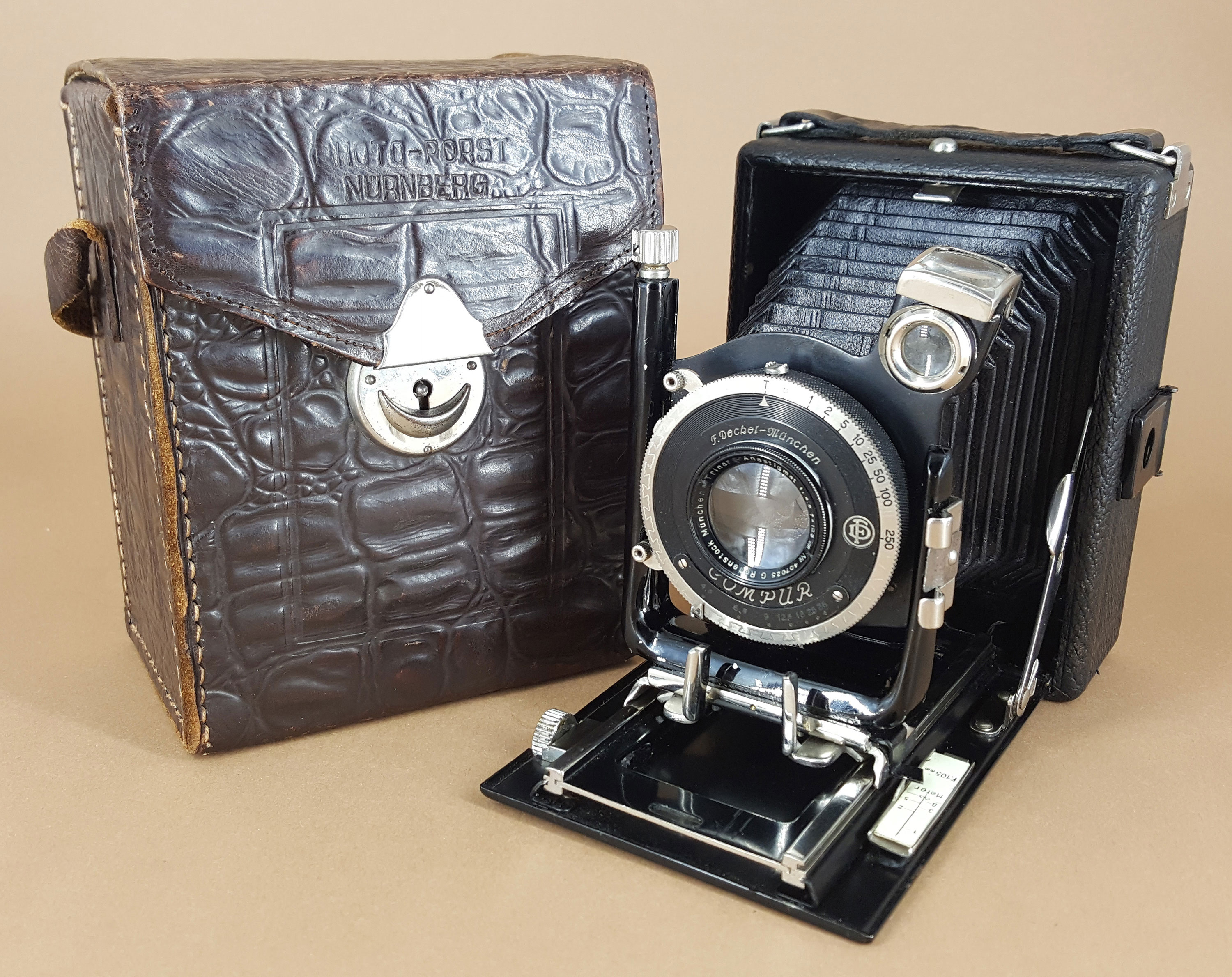 Das eingangs gezeigte Modell mit Trinar 4.5 und Compur-Verschluss war bei Porst 1930 für 70 Reichsmark im Angebot. Passenderweise kam mein Exemplar auch in einer Photo-Porst Kameratasche bei mir an.