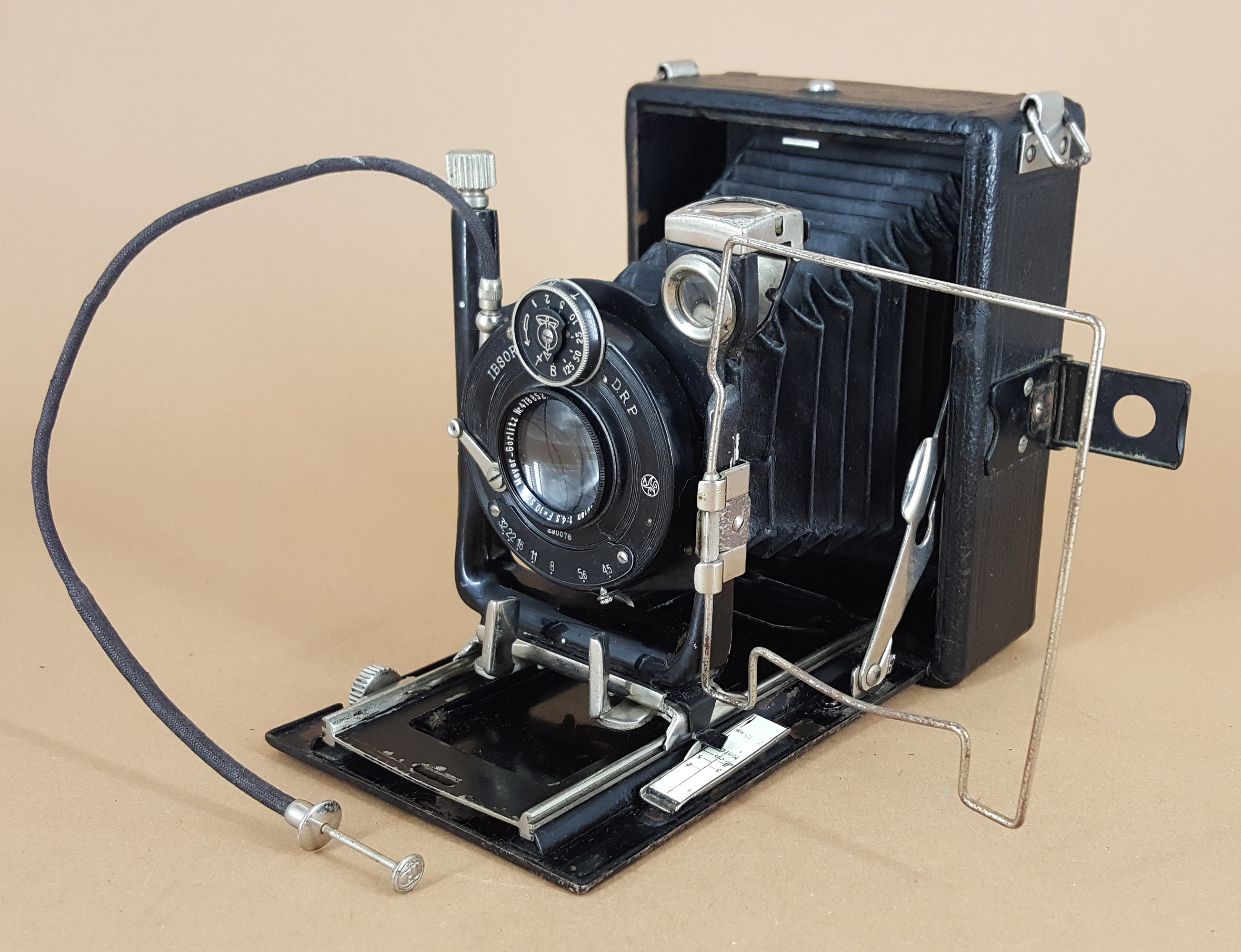 Hier ist noch ein weiteres einfacher ausgestattetes und nicht ganz so gut erhaltenes Exemplar der Merkel Tik mit Helioplan 4.5 und Ibsor-Verschluss. Das Objektiv datiert diese Kamera auf 1931.