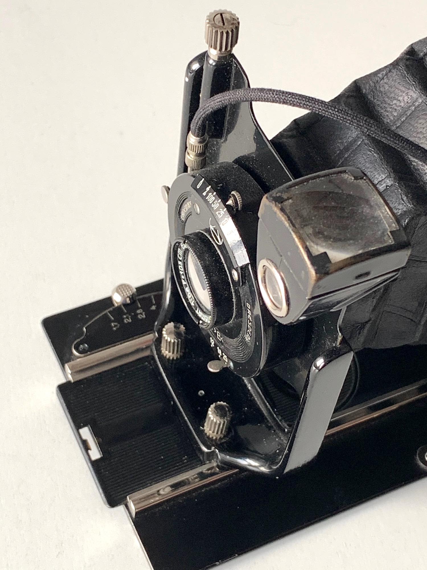 Am gezeigten Exemplar fällt allerdings auf, dass die Höhenverstellung mittels Spindeltrieb erfolgt, eigentlich ein Merkmal besserer Modelle. Die Abbildungen bei Göllner und in der (im Netz verfügbaren) Bedienungsanleitung zeigen hingegen eine Kamera mit arretier- und verschiebbarem Objektivbrett. Entweder gab es hier eine Serienänderung, oder diese Kamera wurde nachträglich modifiziert. Es gibt einen Brillantsucher ohne die sonst übliche Libelle; auch der zu dieser Zeit übliche seitliche Rahmensucher wurde eingespart. Die optische Ausstattung ist ebenfalls entsprechend schlicht – verbaut ist ein Doppelanastigmat 6,8/10 in Cronos B (1–1/100). Die Kamera ist im Katalog 1925 nicht verzeichnet, auch nicht in der Liste Nr. 1450 („Ernemann, jetzt Zeiss Ikon“) von 1926; sie findet sich aber im Händlerkatalog von Hausamann 1926.