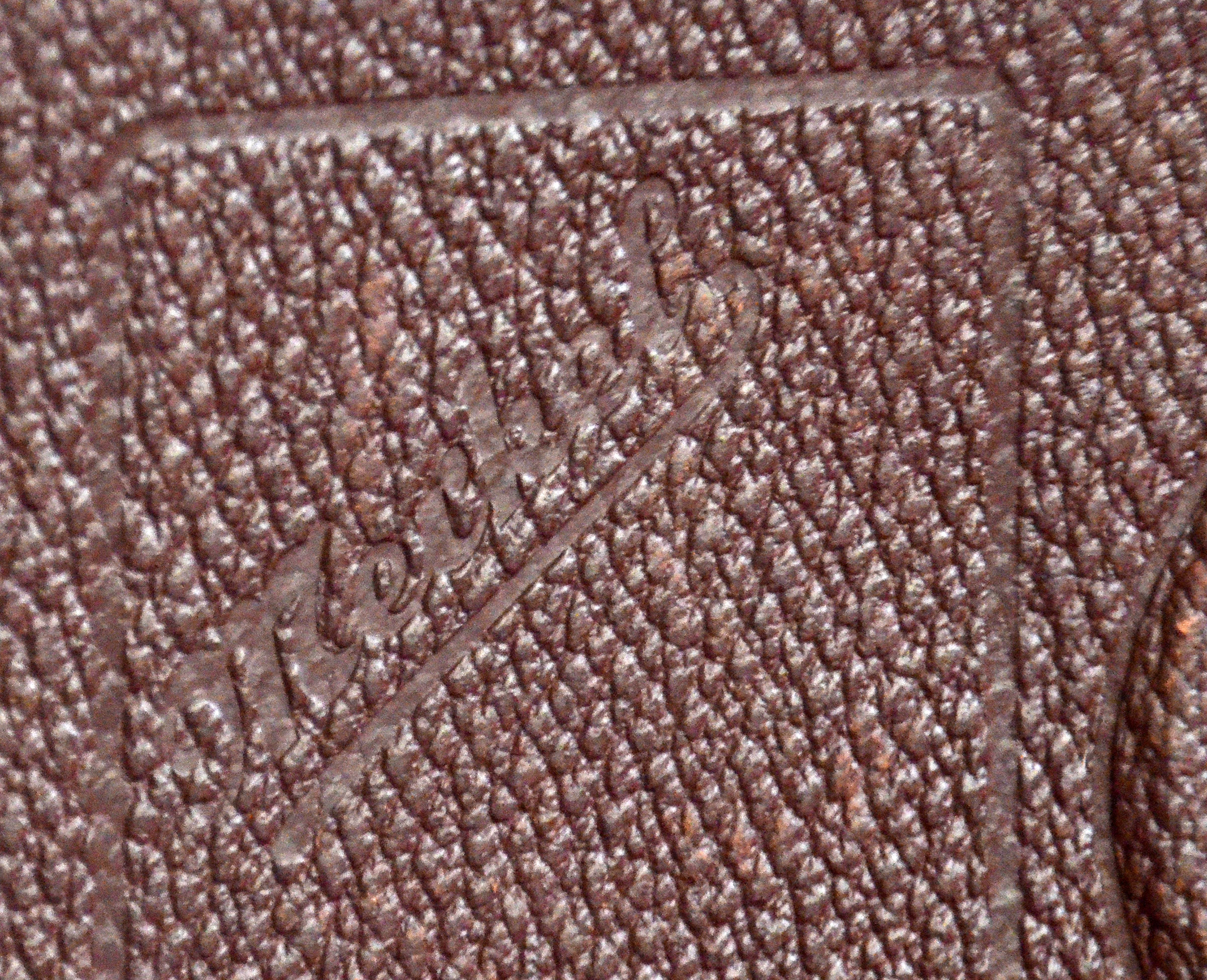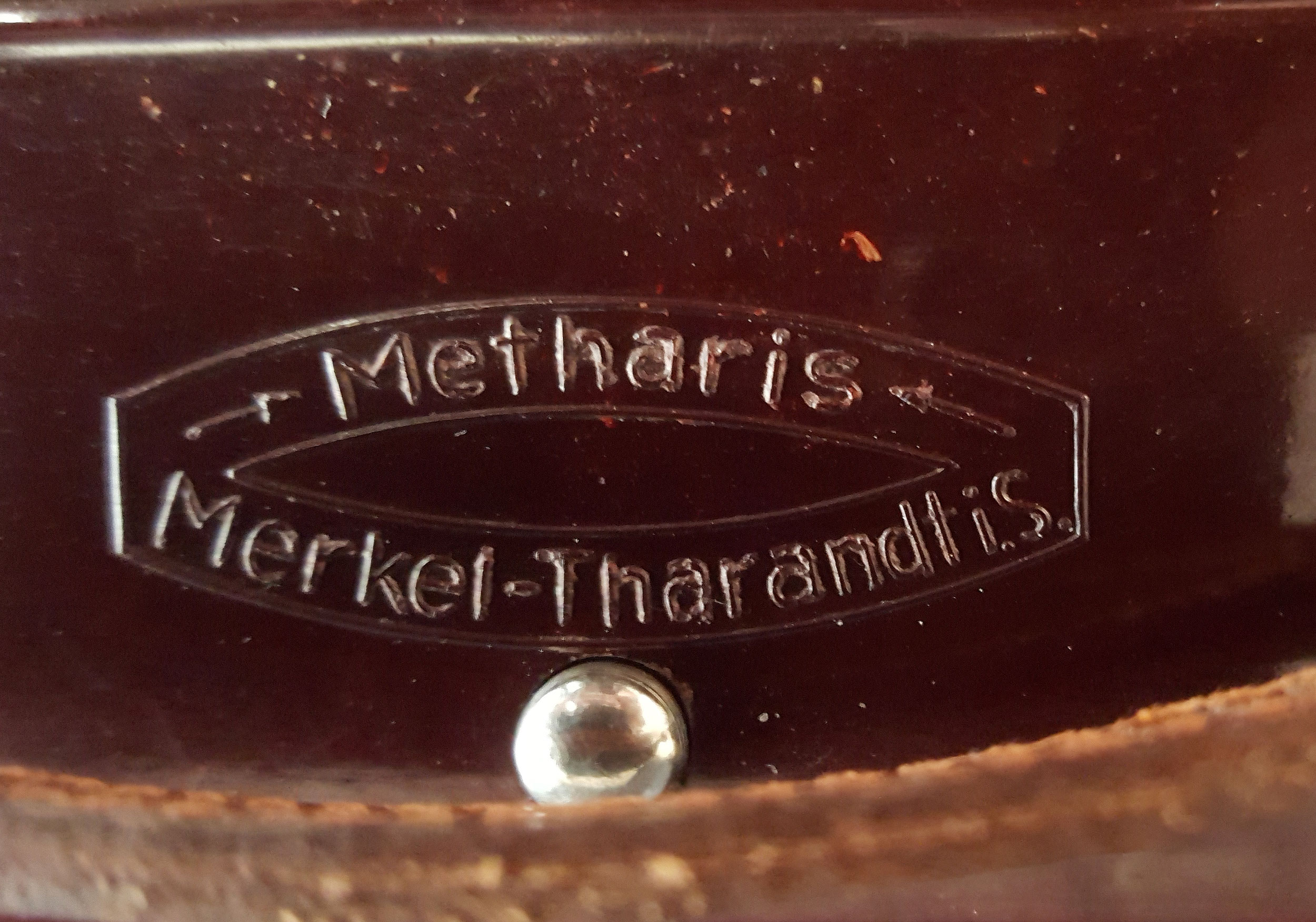 Bezeichnet ist die Kamera an drei Stellen: Auf der Rückwand findet sich die Lederprägung „Merkel“. Unter dem Tragegriff befindet sich die Prägung „Metharis Merkel Tharndt i.S.“ und im Inneren ist eine „Metharis“-Plakette befestigt.