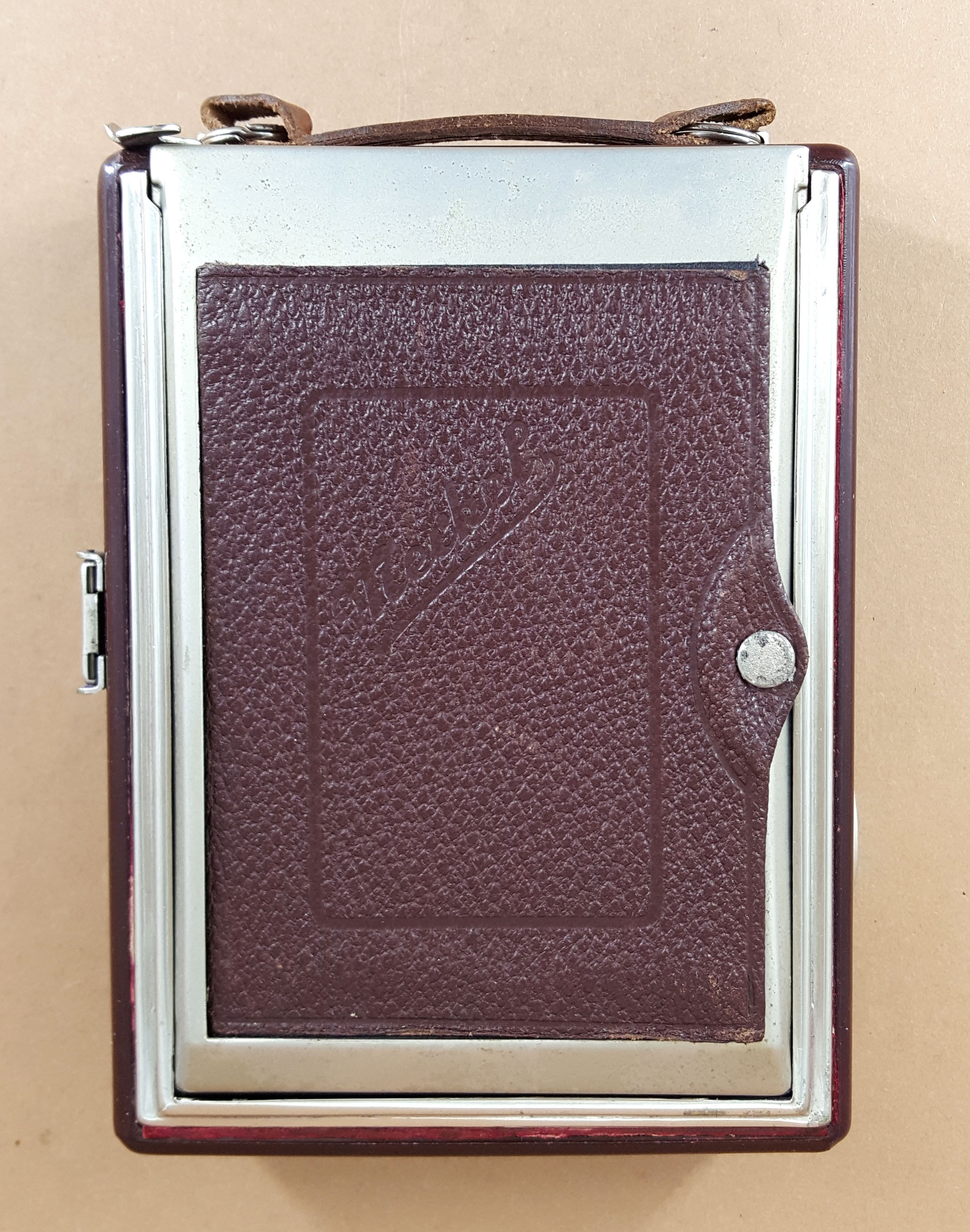 Eine Modellbezeichnung findet sich an der Kamera nicht. Dies ist auch der Grund, weshalb die Kamera häufig als „Metharis-Bakelit“ im WEB und in Publikationen aufgeführt wird. Deshalb hier auch nochmal der Hinweis: die „Metharis“-Schriftzüge auf der Kamera sind der Markenname und keine Modellbezeichnung!