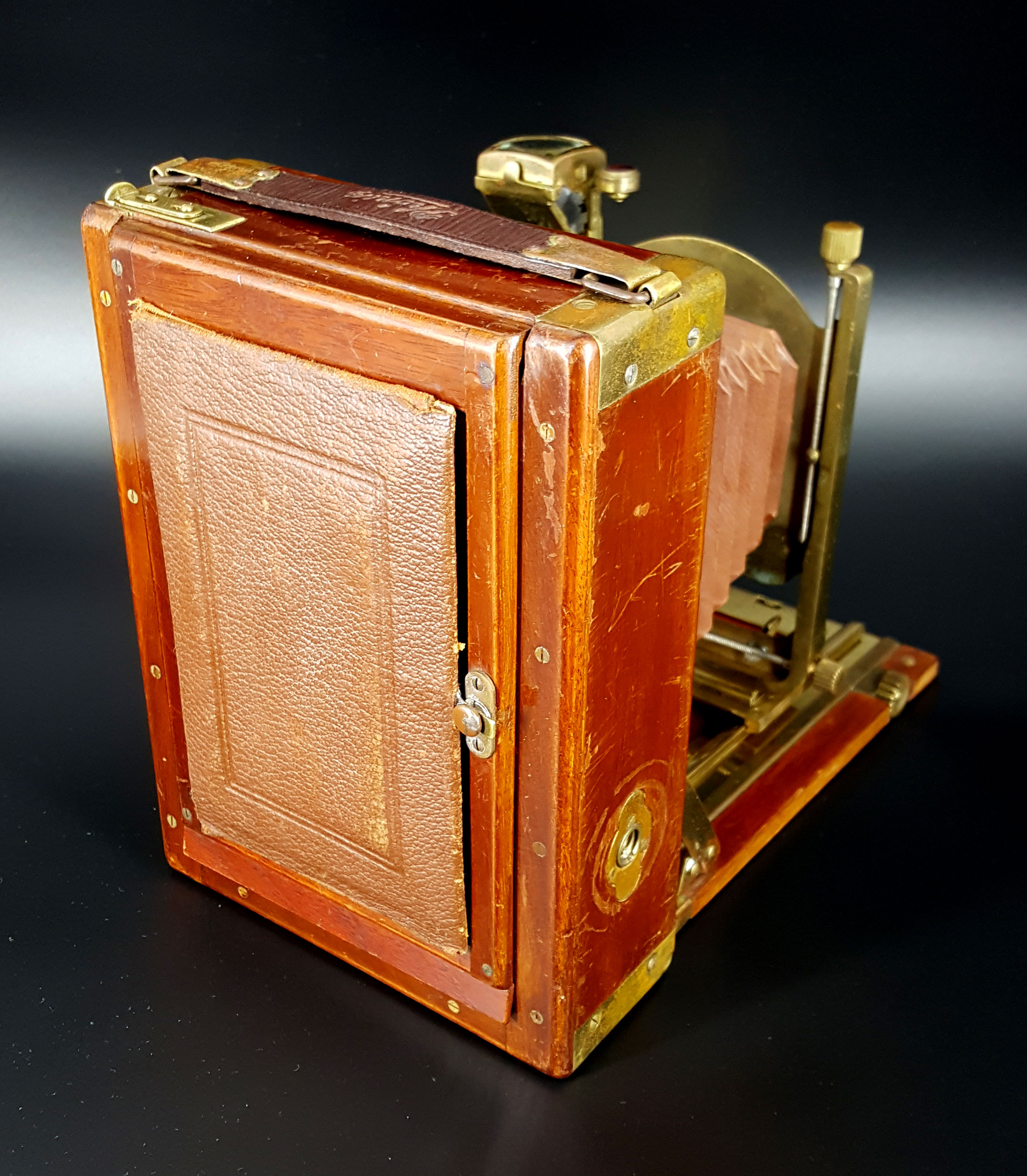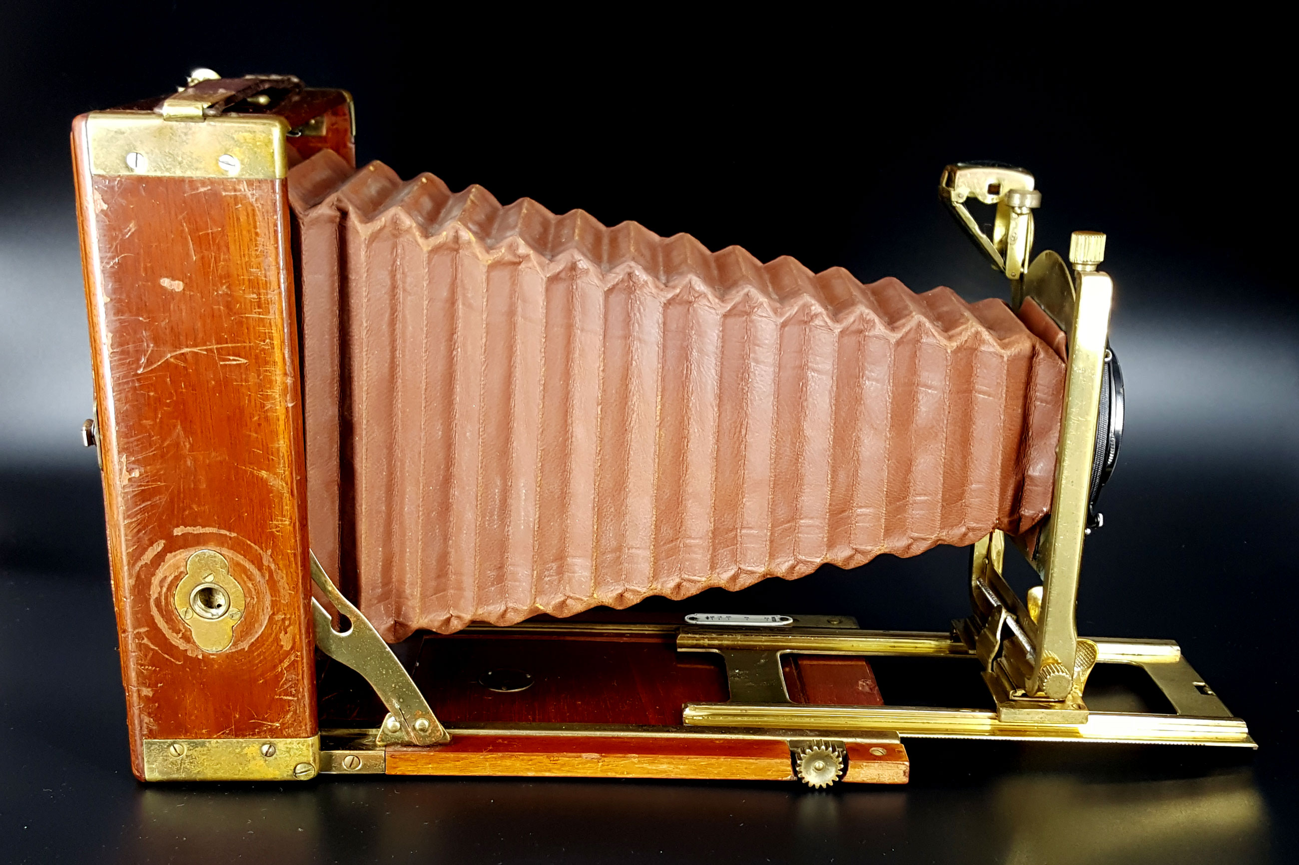 Das vorliegende Exemplar mit dem Aufnahmeformat 10x15 ist mit einem Steinheil Unofokal 4.5/16,5 im Radcompur ausgestattet.