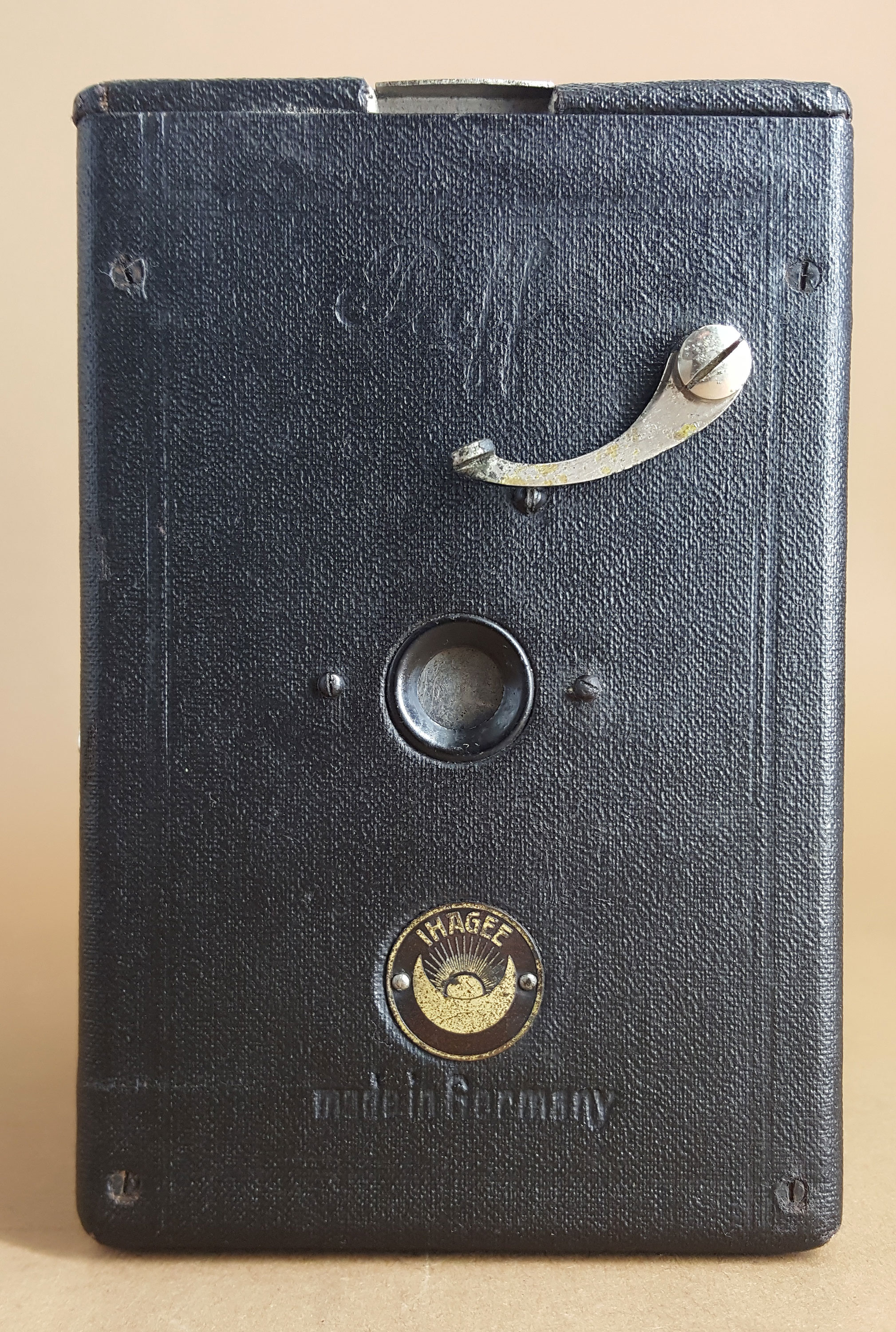 1. Die Positionierung des Spannhebels auf der Vorderseite lässt auf ein Baujahr 1924 oder später schließen, darauf macht die Beschreibung bei Sylvain Halgand aufmerksam (https://www.collection-appareils.fr/x/ht...N°%203.html); bei den früheren Modellen hat er sich nämlich an der rechten Seitenwand befunden.