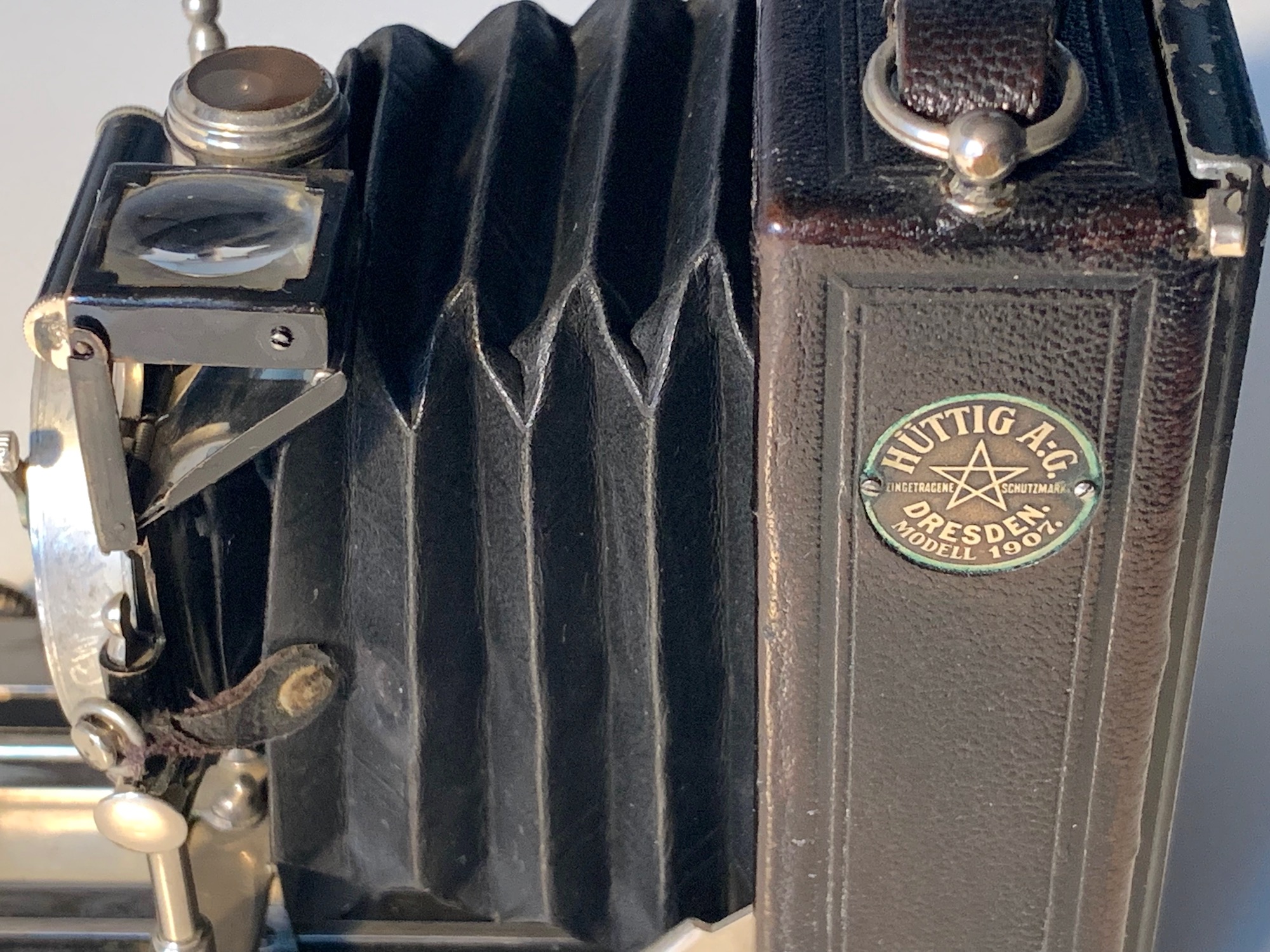 Ideal war die Bezeichnung einer Reihe hochwertiger Plattenkameras in verschiedenen Formaten, die zunächst von Richard Hüttig, ab 1909 von der Ica und ab 1926 von Zeiss Ikon angeboten wurden. Hier soll eine frühe Hüttig-Variante vorgestellt werden, das Modell 1907 im Format 6,5x9. Bei Hüttig wurden die Modelle auf den Geräten mit Jahreszahlen bezeichnet; wie lange der Modellzyklus jeweils dauerte, ist mir nicht ganz klar. Es könnte sich hier um das Modell Nr. 160 handeln.