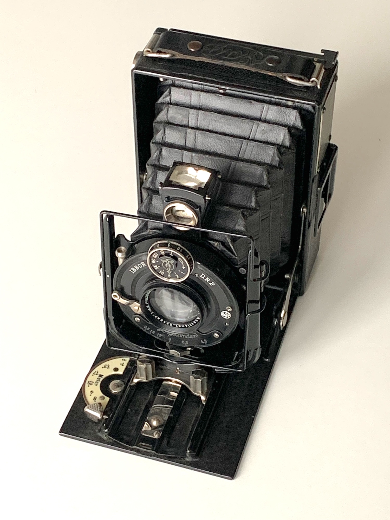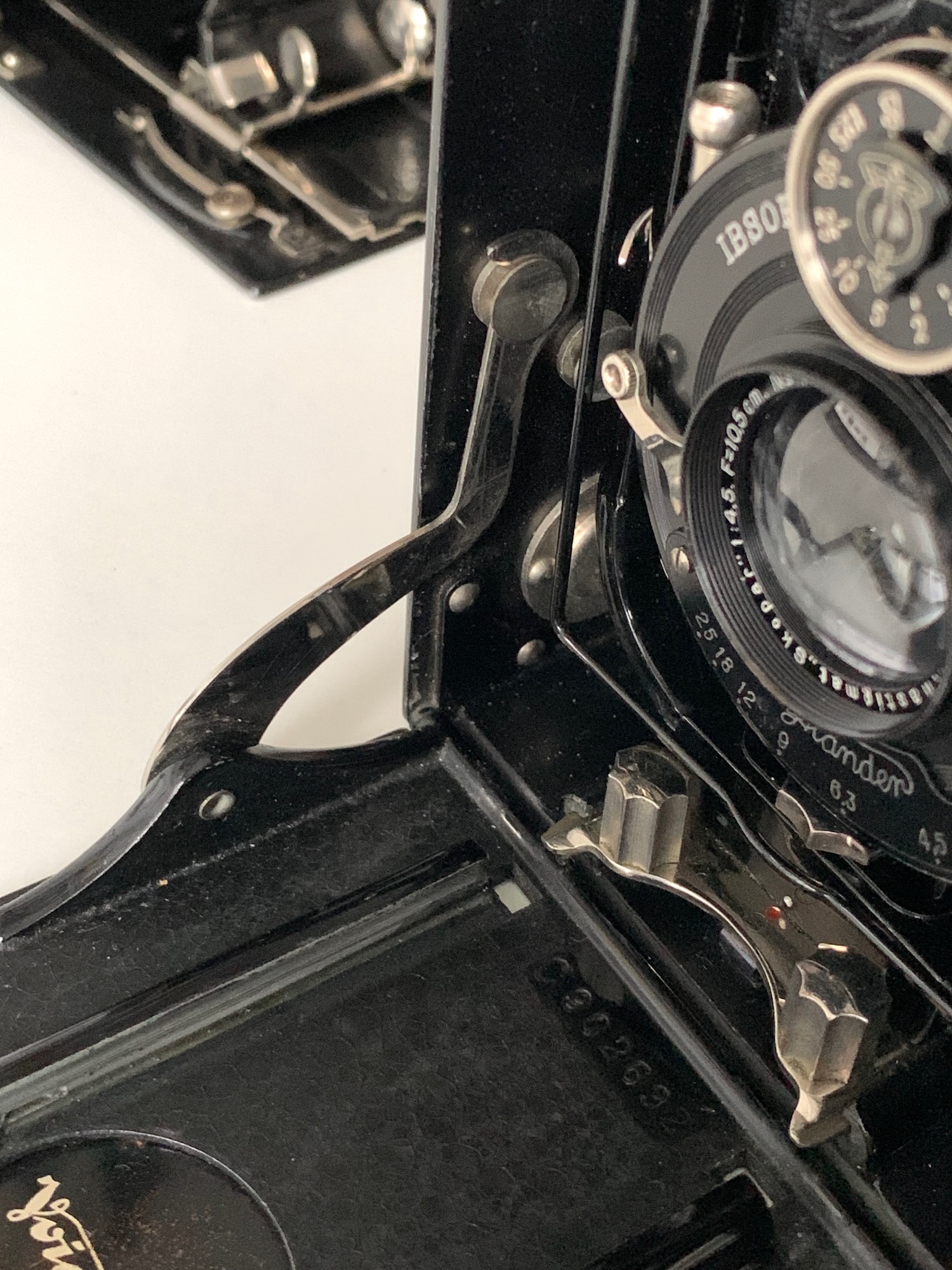 Das vorliegende Exemplar hat die beste optische Ausstattung – verbaut ist ein Skopar 4,5/10,5 in Ibsor-Verschluss (1–1/125). Diese Ausführung kostete seinerzeit 71,00 RM.