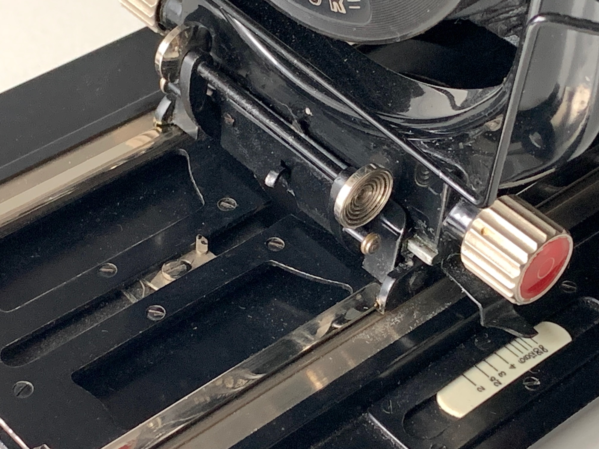 Die Kamera besitzt wie die späteren 9x12-Bergheils die neue U-Standarte mit den dicken Triebknöpfen für die Objektivverstellung, in die jeweils eine Libelle eingelassen ist. Die Spreizen sind jedoch noch die alten, und auch die Handhaben mit der gefederten Bremse verweisen noch auf das erste Modell.