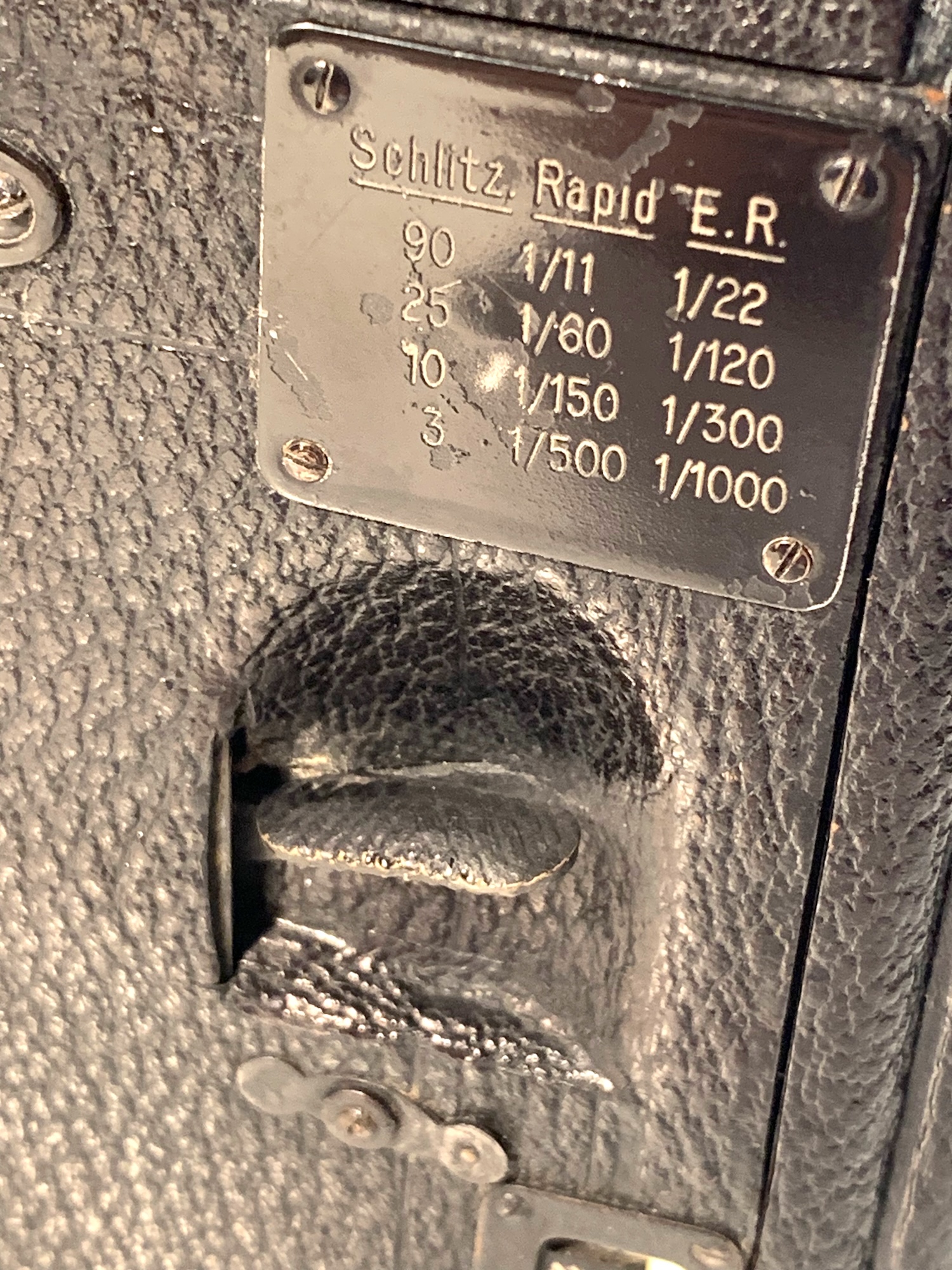 Der Verschluss besitzt vier Schlitzbreiten (3, 10, 25 und 90 mm); aus der Wahl der Schlitzbreite und zwei Stufen der Federspannung (Rapid und E[xrtra] R[apid] ergeben sich acht Kombinationen, die Verschlusszeiten von 1/11 bis 1/1000 erlauben.