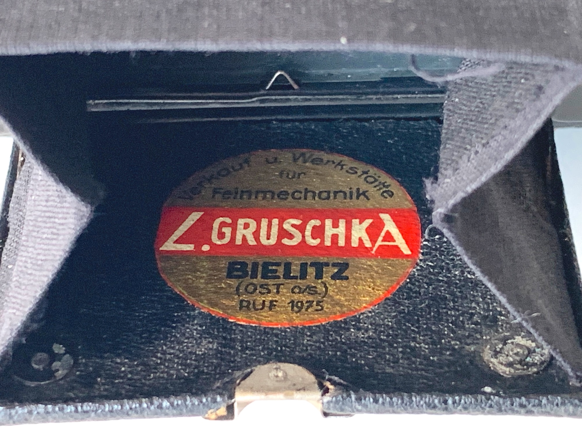 Wie aus dem Firmenschild im Lichtschacht hervorgeht, wurde das vorliegende Exemplar von der Firma L. Gruschka in Bielitz (Oberschlesien) verkauft oder war dort einmal zur Reparatur.