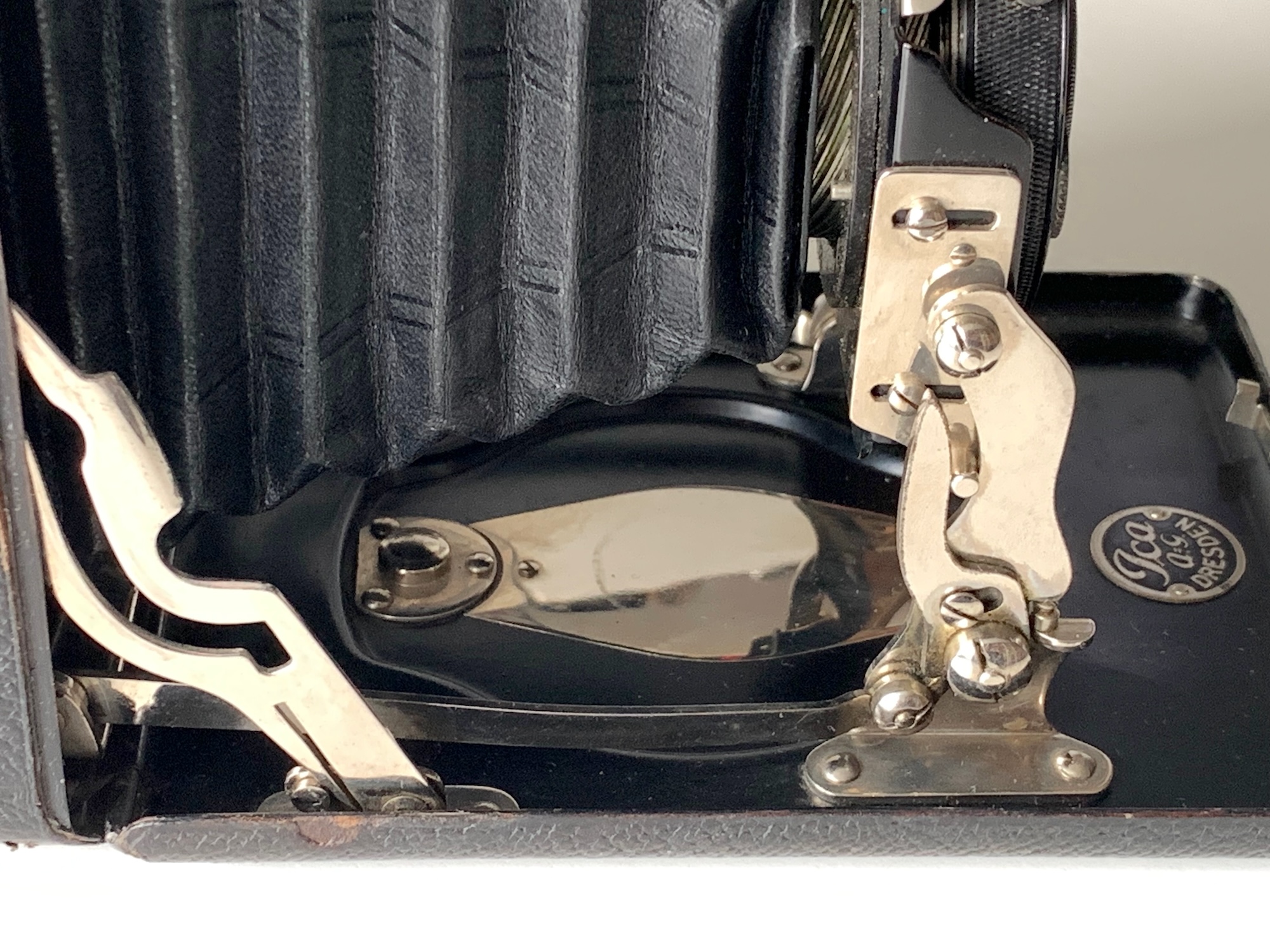Am meisten beeindruckt mich an diesen Kameras die mechanische Qualität der Springkonstruktion. Ich habe mittlerweile mehrere davon: Das ist ganz solide und präzise ausgeführt, nichts wackelt – anders als bei den Ernemann-Springkameras, deren fragile Mechanik nach meiner Beobachtung heute oft ausgeleiert ist.