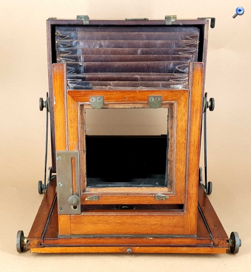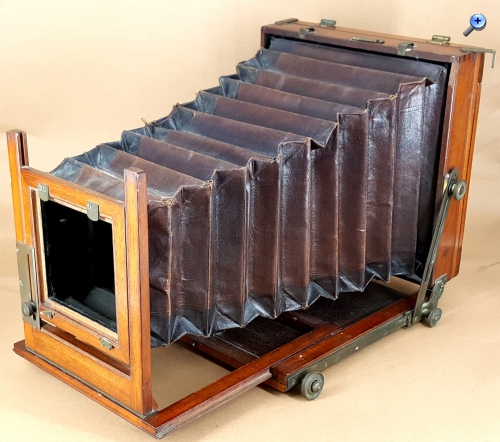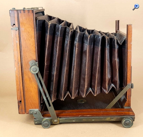 ich habe nochmal etwas intensiver zu den Reisekameras von Hüttig gesucht. Vom englischen Typ hatte Hüttig demnach wohl vier verschiedene Modelle im Sortiment. Die einfachste war die „Cosmopolite“ mit feststehendem Rückteil:
