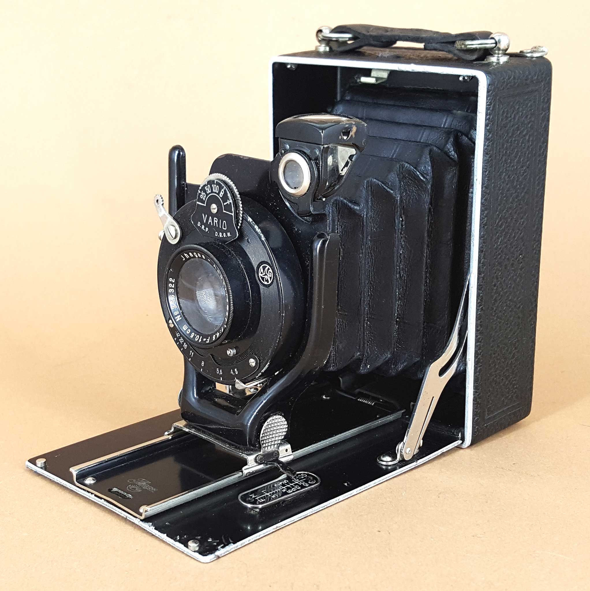Das vorliegende Exemplar ist mit Ihagee-Anastigmat 4.5 im Vario-Verschluss ausgestattet, was für dieses Modell die Bestausstattung bedeutet. Auf Grund der äußeren Merkmale und der Seriennummer am Gehäuse (314726) kann die Kamera um 1932 eingeordnet werden. Zu dieser Zeit kostete die Kamera in der hier gezeigten Ausstattung 39 RM.