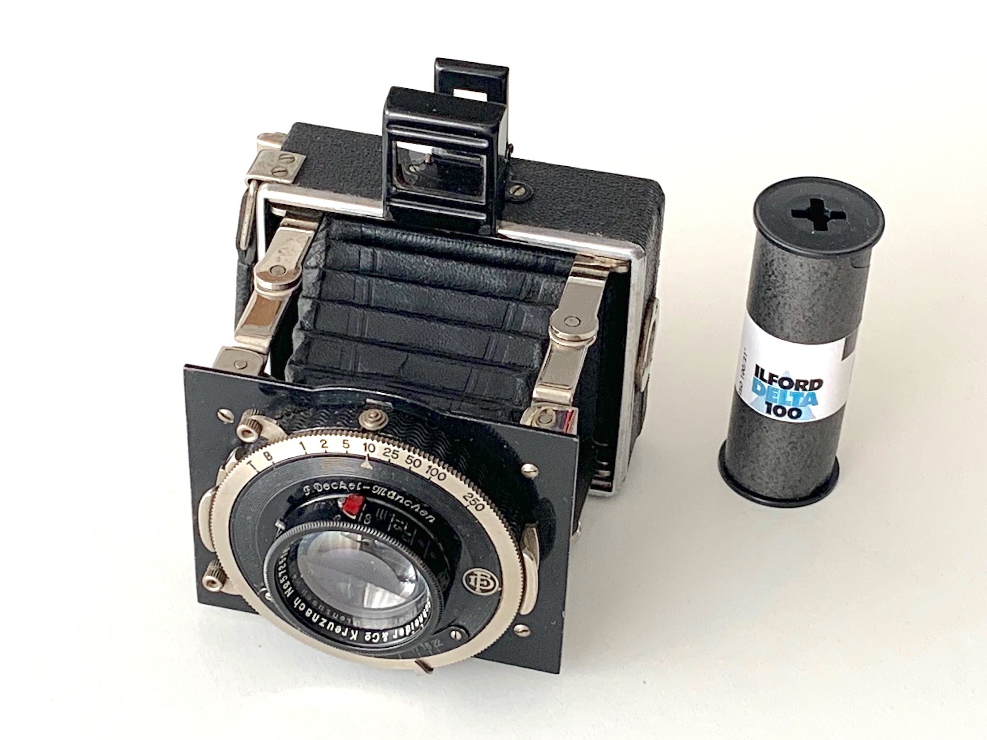 Im Grunde ein Anachronismus, denn die Zeit der Miniatur-Plattenkameras war in den 1930er Jahren bereits zu Ende; bei den Westentaschenkameras hatte sich der Rollfilm durchgesetzt. Die letzte Zeiss Ikon Bébé 342 (--> https://blende-und-zeit.sirutor-und-comp...&thread=196), im ZI-"Photoratgeber" vom April 1931 bezeichnenderweise unter den "Spezialcameras" gelistet, war bereits Ende 1931 ausgelaufen. Umso überraschender, dass im bei Sylvain Halgand (--> https://www.collection-appareils.fr/x/ht...orelle%20P.html) abgebildeten Katalogblatt zur Korelle P vom "neumodernen 4,5x6 Format" die Rede ist!