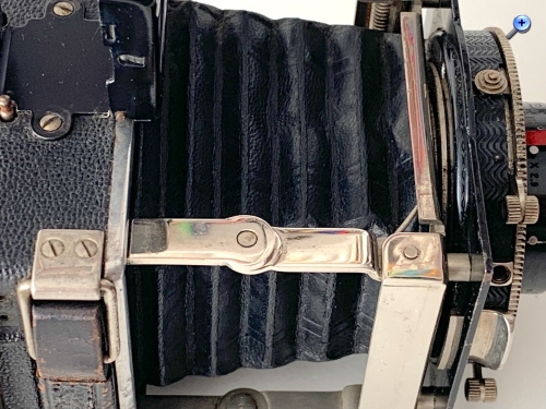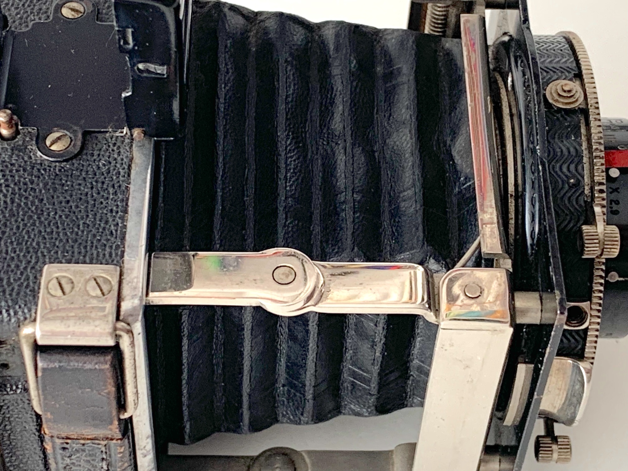 Wie die ZI besitzt sie Knickspreizen. Im erwähnten Katalog wird die einfache Bedienung herausgestellt: „Die Kamera ist flach wie im Rollfilm-Modell und durch einen Griff in Aufnahmestellung zu bringen. Ein leichter Anzug des Vorderteiles und das Objektiv springt in die Gebrauchsstellung. Ein Druck auf die Spreizen und die Kamera schließt sich.“ Das funktioniert auch heute noch einwandfrei und präzise; die Kamera ist mechanisch sauber konstruiert und verarbeitet. Wenn man das Vorderteil herauszieht, öffnet sich automatisch der Newtonsucher.