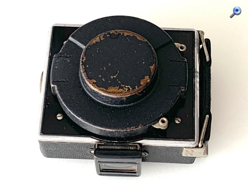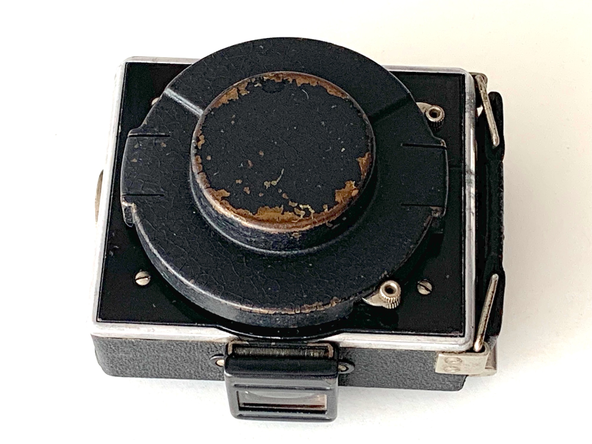 Die Fokussierung erfolgt wie bei der Bébé über die Frontlinse, was technisch eine eher schlichte Lösung ist. Interessant die (heute oft fehlende) Abdeckhaube, die über die Vorderseite gestülpt und an den Haltegriffe festgeklemmt wird; sie schützt das Objektiv und die Bedienungselemente.