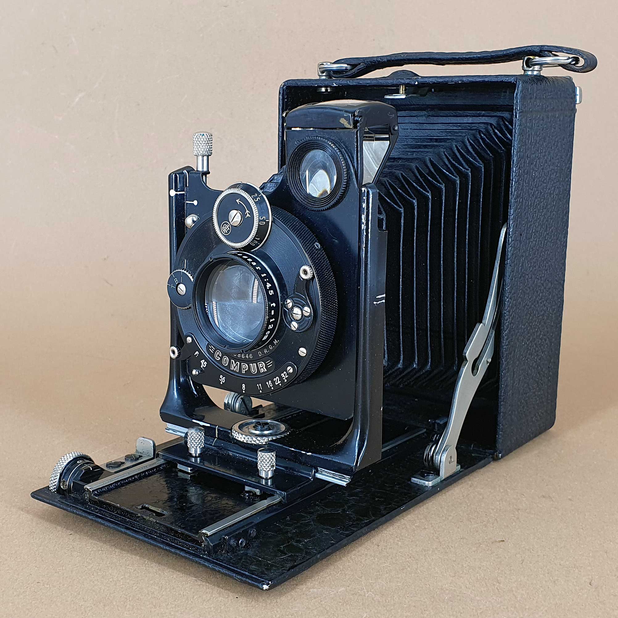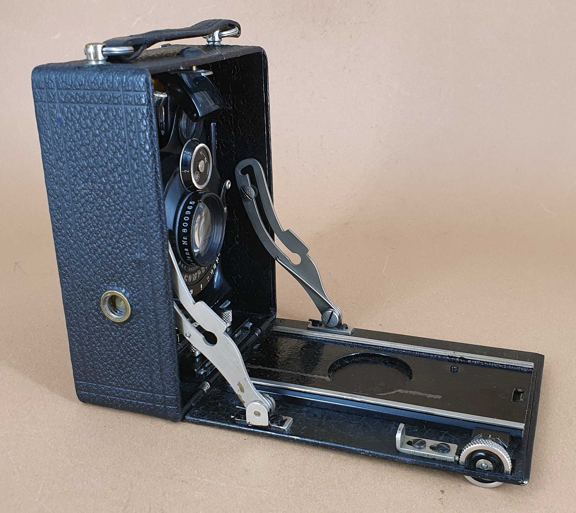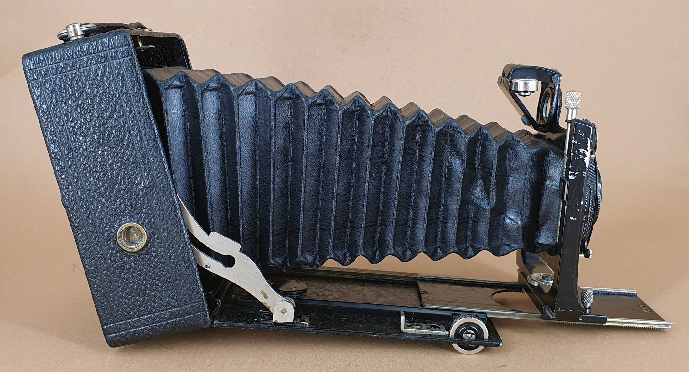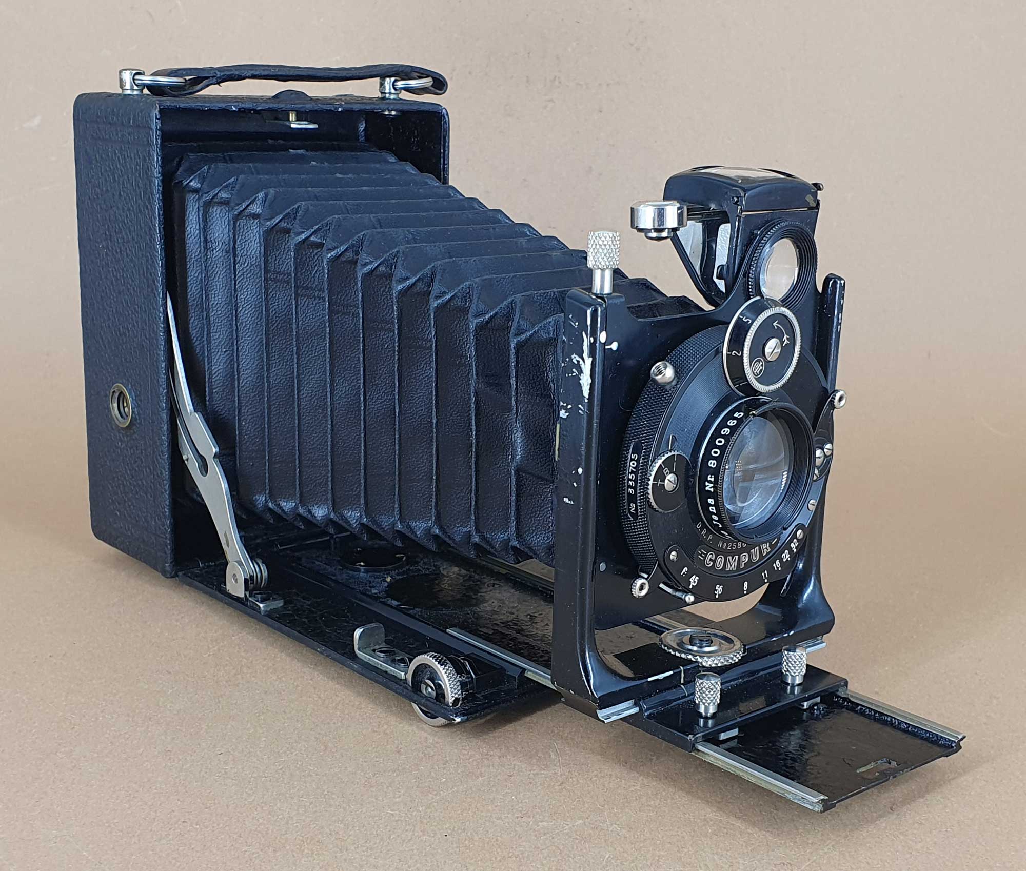 vielen Dank für die Vorstellung – eine bemerkenswerte Konstruktion. Technisch ist sie der Ica/ZI Ideal 111 voraus, denn die besitzt keinen neigbaren Laufboden (er war den größeren Modellen vorbehalten). Am meisten verblüfft mich der Triebknopf mit Entfernungsskala – so etwas habe ich an Plattenkameras noch nicht gesehen. (Auch bei der Rolleiflex gab es das nicht von Beginn an; ein Drehknopf mit Entfernungsskala wurde erst mit einem der modifizierten Modelle eingeführt.)