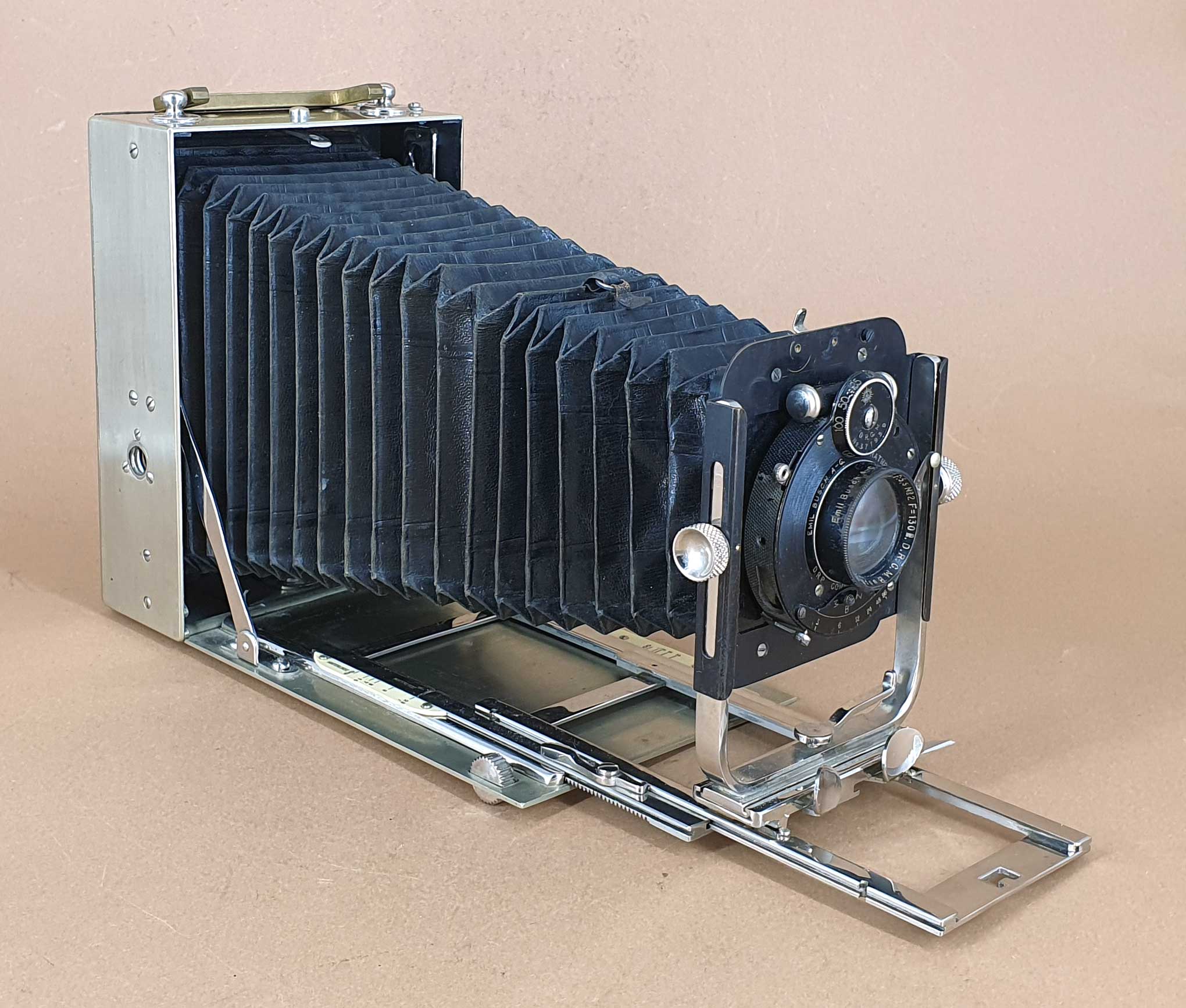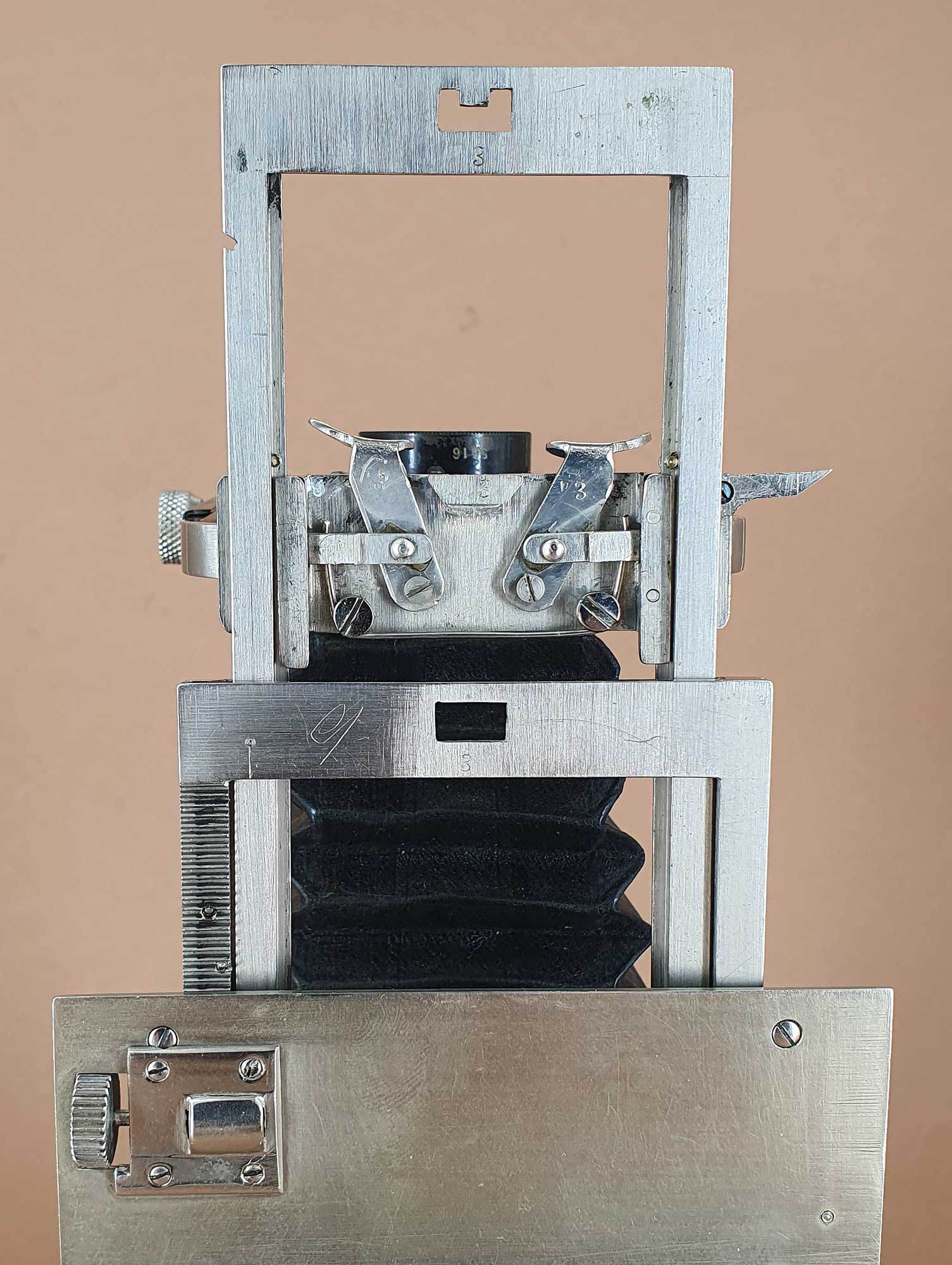 Ich überlege gerade, ob es eigentlich weitere solche "Vollmetall"-Plattenkameras ohne Lederüberzug gegeben hat? In unserem Onlinemuseum wohl jedenfalls nicht.