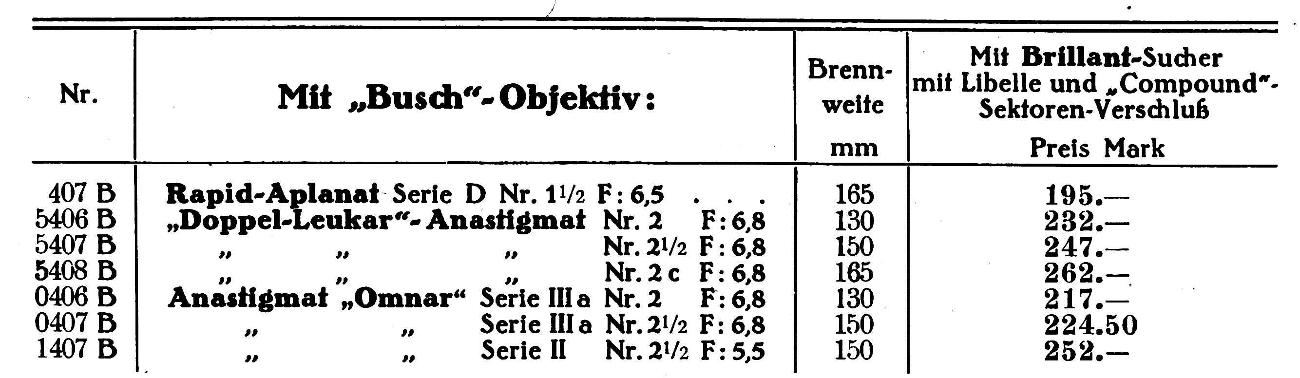 Ja, der Hersteller ist Gebrüder Herbst in Görlitz. Da Deine Kamera ein Steinheil-Objektiv besitzt, ist es vermutlich keine Busch Drei-Preis-Kamera. Es sei denn, sie besitzt die entsprechende Lederprägung von Busch, dann ist die Optik ausgetauscht worden.