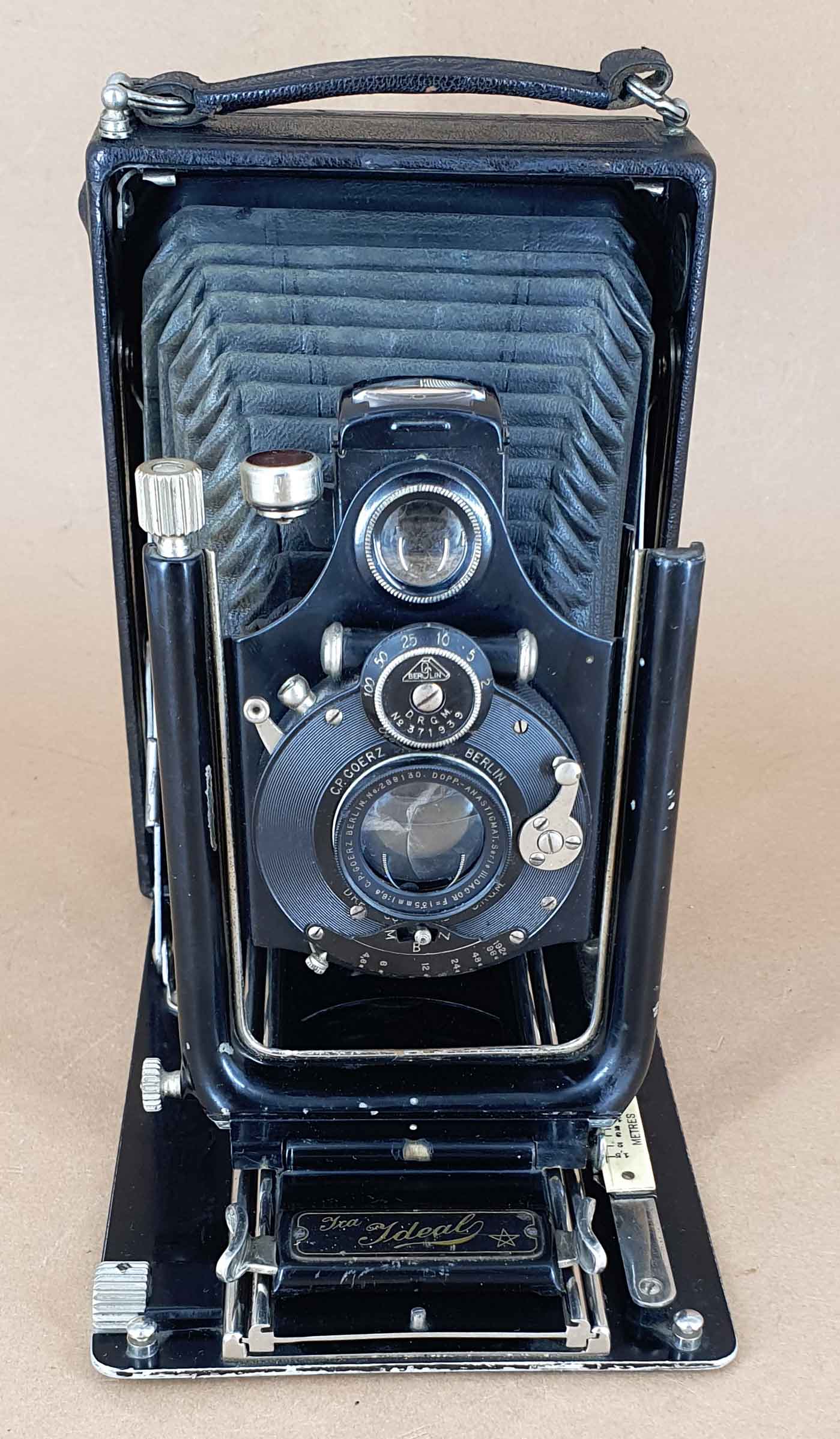 hier soll eine frühe Ica-Plattenkamera 9x12 vorgestellt werden, die in der Literatur schlecht dokumentiert ist. Gekennzeichnet ist sie als Ideal, die übliche Ica-Modell-Nummer fehlt.