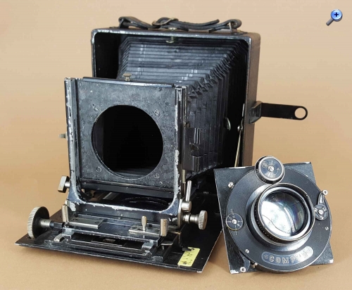 Ausgestattet ist das vorliegende Modell mit einem Meyer-Satzplasmat 4.5/15,3 im Compur-Verschluss.