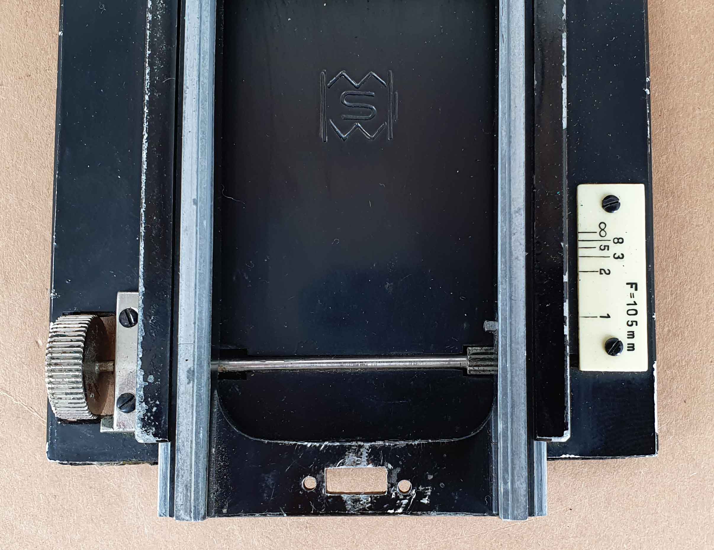 Dass Schiansky diese Buchstaben „M“, „S“ und „W“ als Signet verwendete, dafür findet man auch ein Beispiel im Web (an einer Fotoleuchte), allerdings ist dieses Logo anders geformt. Trotzdem würde ich stark vermuten, dass das Logo auf dem Laufboden für Schianskys Mechanische Werkstätten verwendet wurde. In jeden Fall muss man annehmen, dass diese Kamera nicht von Kieser & Pfeufer vertrieben wurde. Deshalb ist es auch zweifelhaft, dass sie unter dem Modellnamen „Kapim“ verkauft wurde. Unter welcher Bezeichnung und von wem die Kamera verkauft wurde, ist mir nicht bekannt.