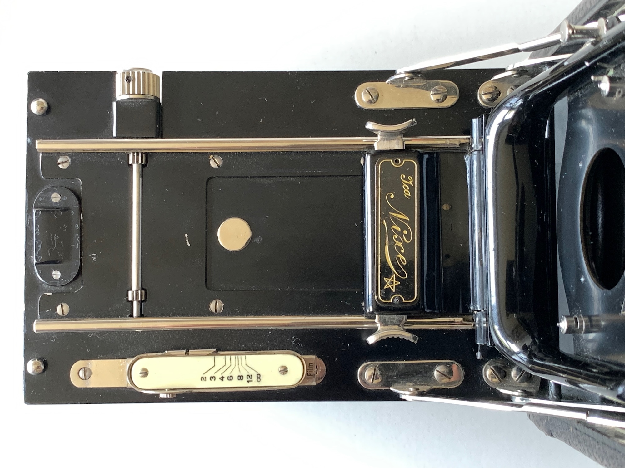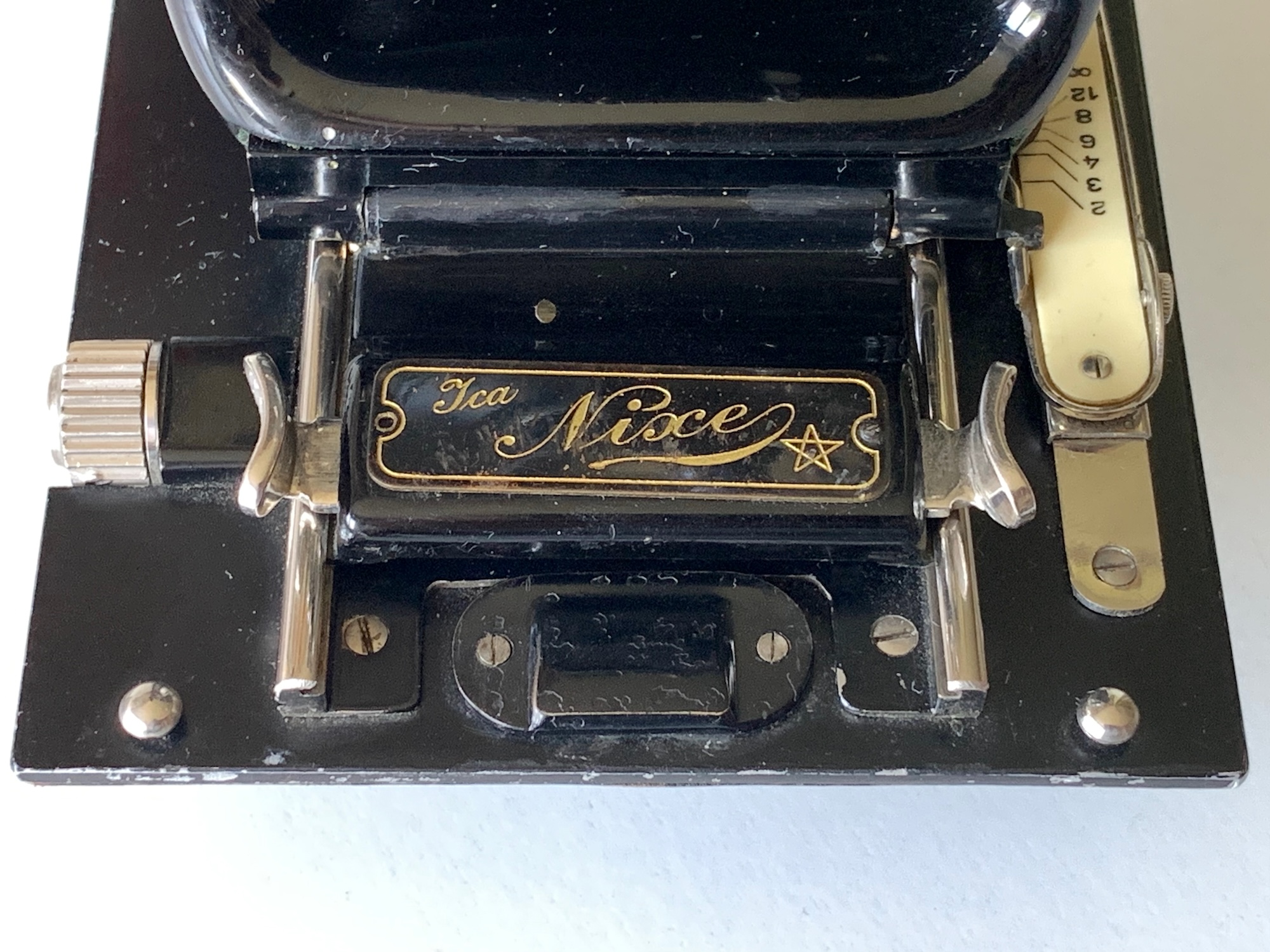 Es bleibt die Frage, warum die Kamera das Nixe-Schild trägt: Ergebnis einer Reparatur, bei der der Schlitten getauscht wurde? Vertauschung der (abschraubbaren) Plakette? Oder hat man anfangs die Modellreihen doch nicht so strikt getrennt? Für Umbenennungen innerhalb des Ica-Programms gibt es immerhin eine Reihe von Beispielen (Ideal 205 --> Niklas; Nelson 225 --> Ideal; Halloh 510 --> Lloyd; Halloh 511 --> Lola; Polyskop 603 --> Plaskop usw.)...