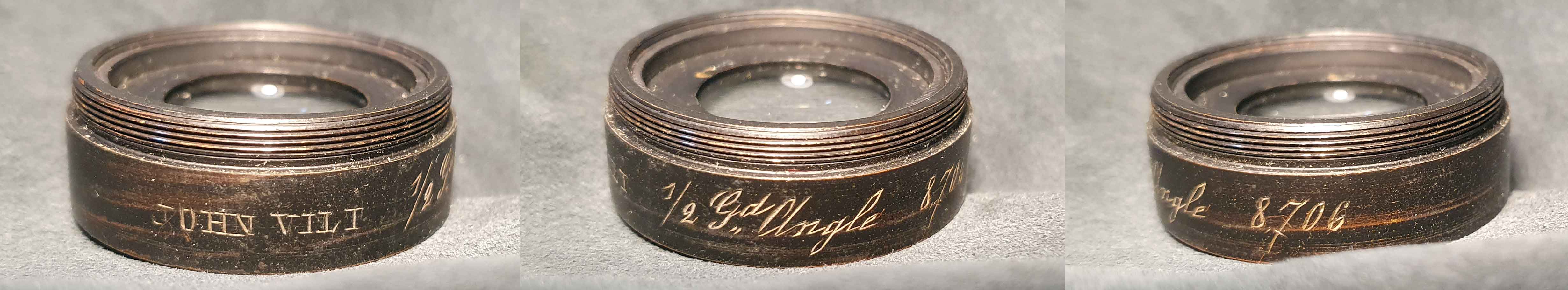 Das Objetkiv trägt die Beschriftung „JOHN VILT ½ Gd Angle 8706“ und auch wenn ich die Winkelbezeichnung nicht zu deuten vermag, so finden sich im Web und in zwei zeitgenössischen französischen Zeitschriften verschiedene Objektive von John Vilt jedoch ohne Angabe eines Produktionsstandortes. Vielleicht hat ja einer der Leser einen passenden Tipp?