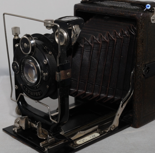 darin unterscheidet sich mein Exemplar: - Doppel-Anastigmat Rodenstock 1:4,5 f= 10,5cm - Verschluss Compur mit Z,D,M -1,2,5,10,25