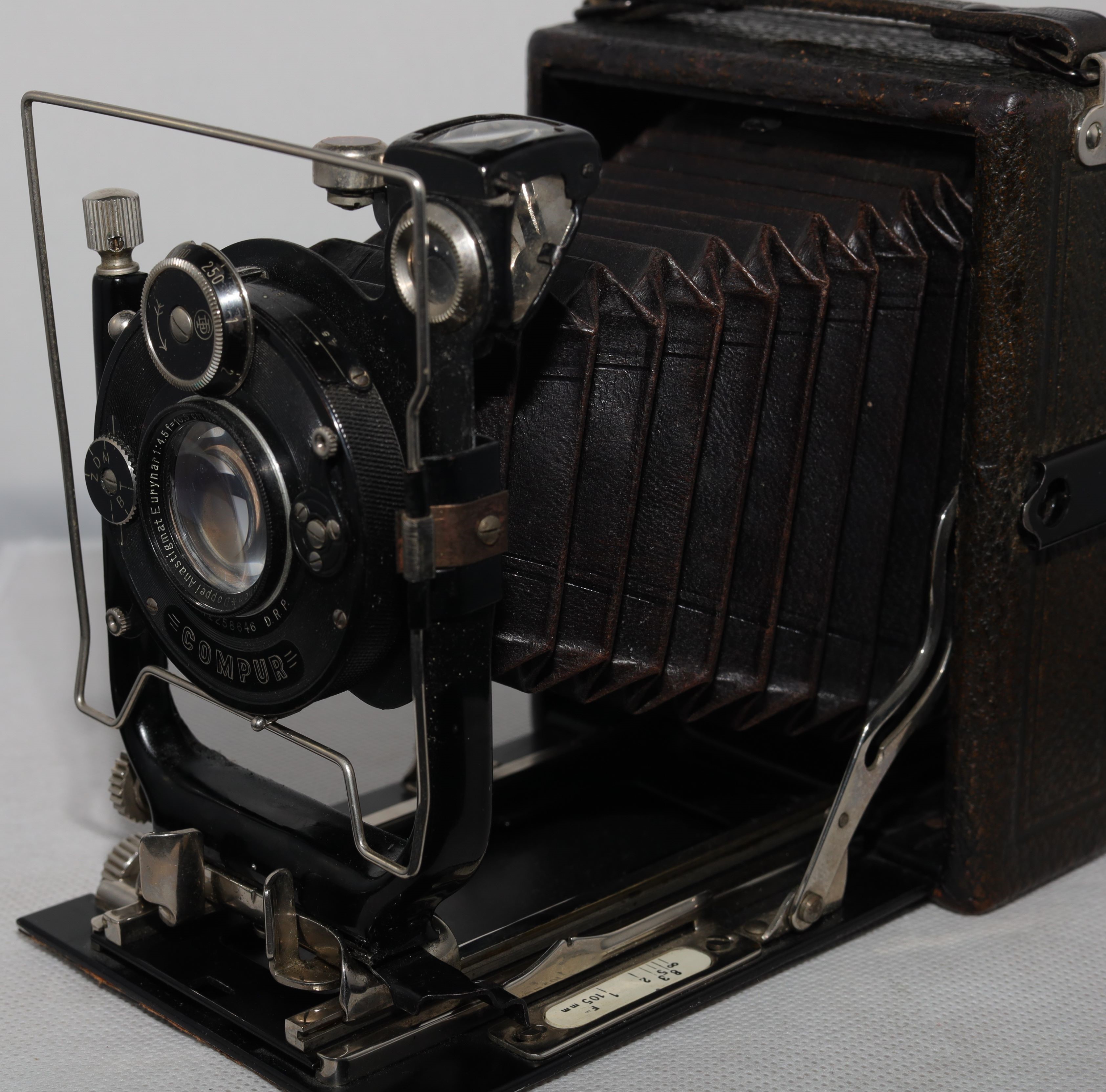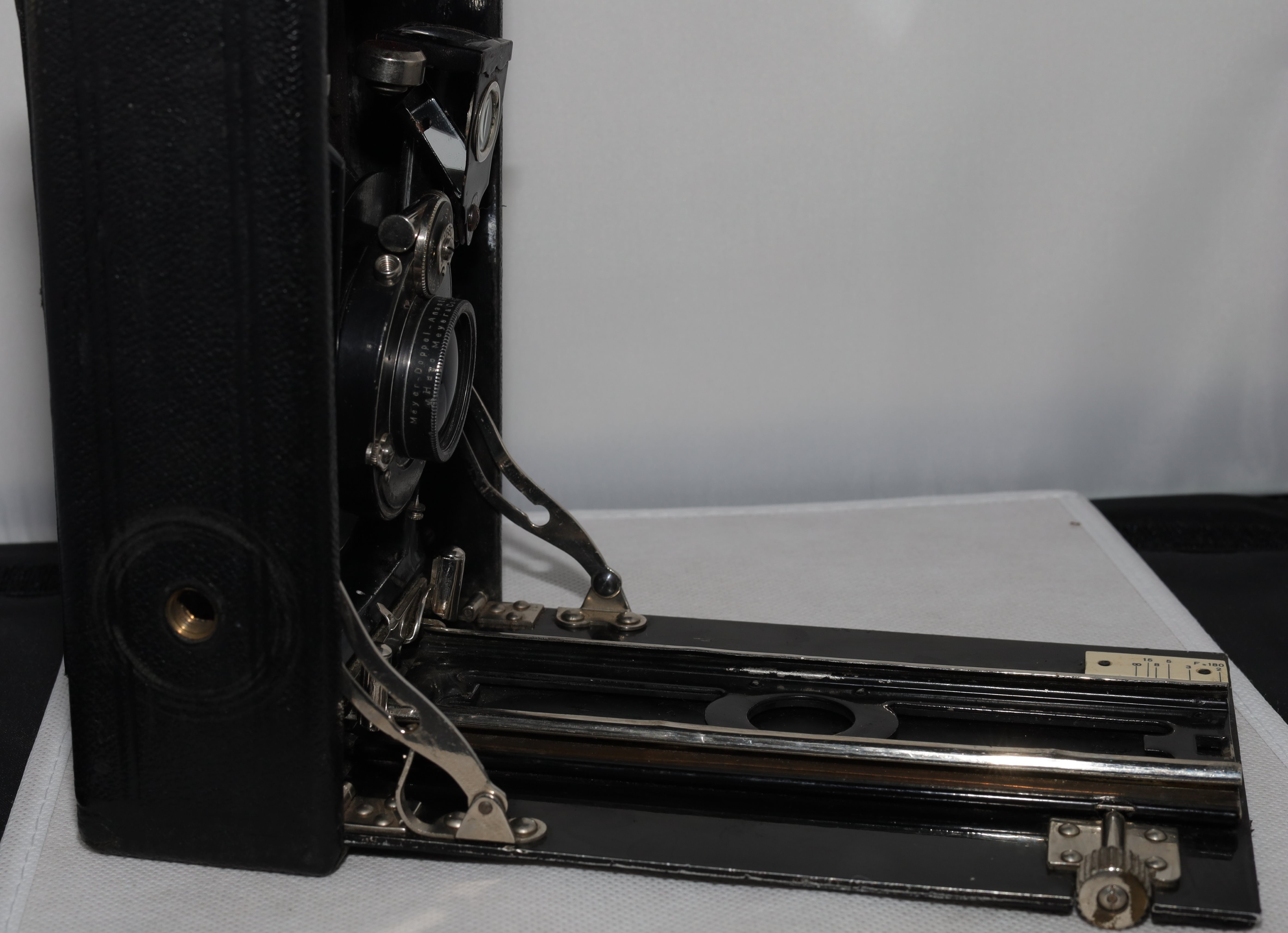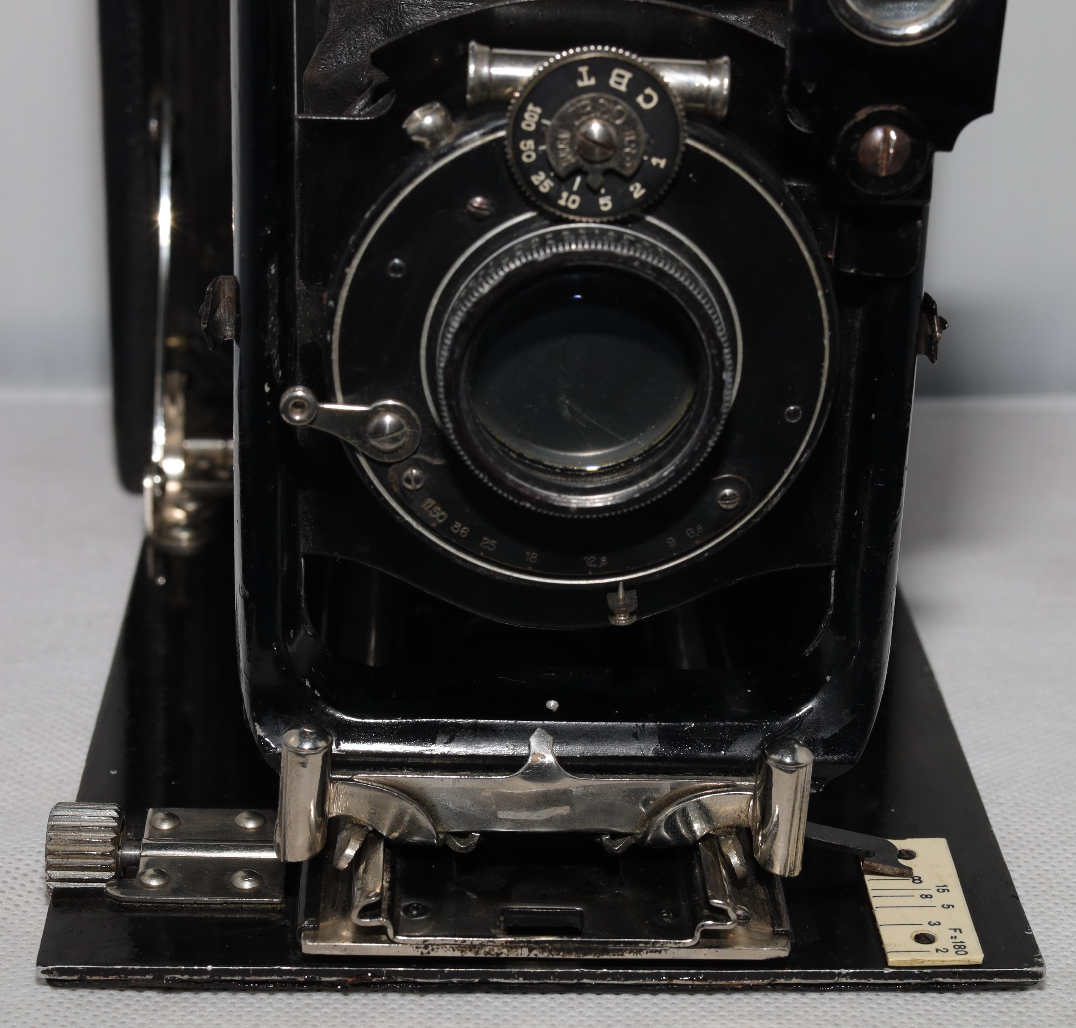 Interessant übrigens die Austattung mit dem 180er Objektiv; Standardbestückung für 10x15 waren ja 165 mm, aber 180mm kommen gelegentlich vor.