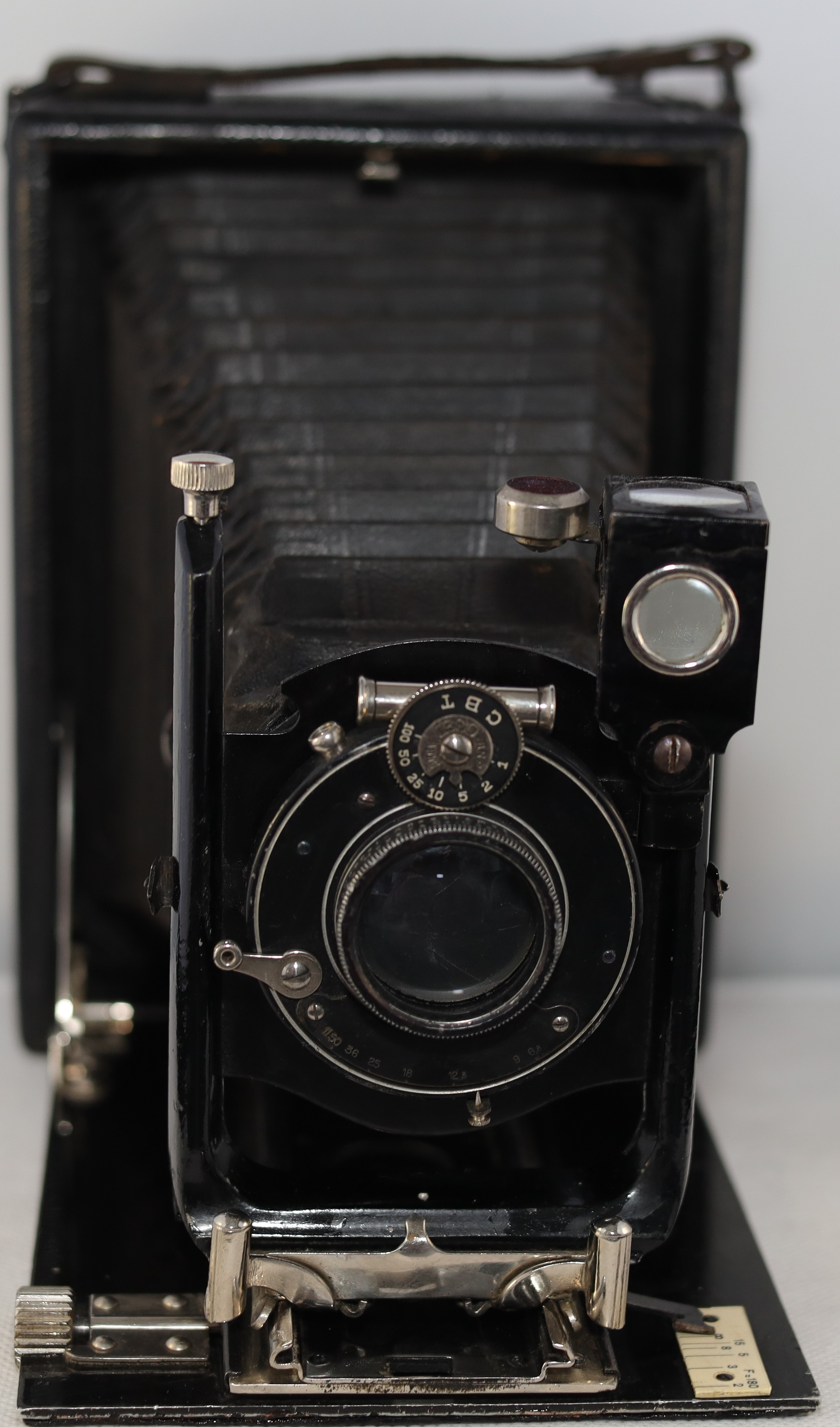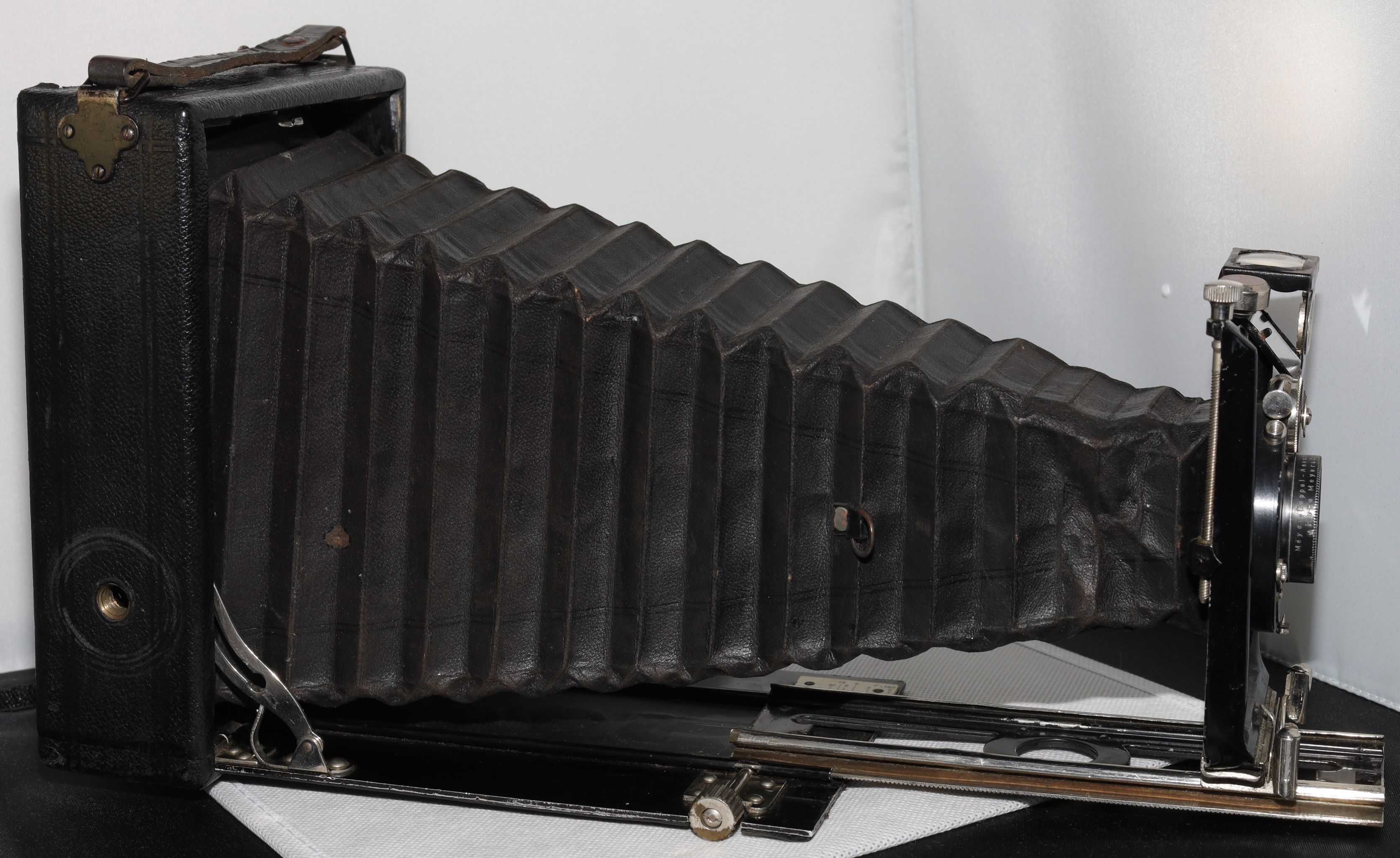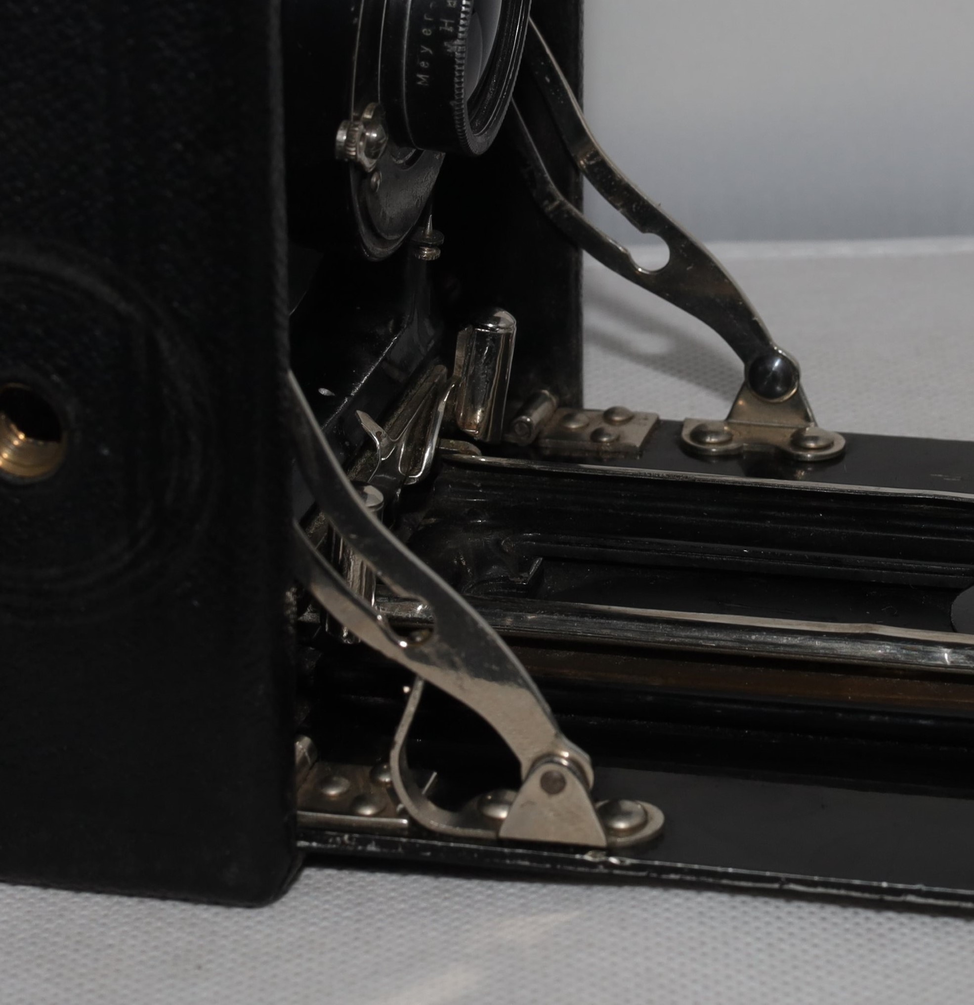 von den Spreizen her könnte es die AVUS 10x15, aber die Handhaben sind anders. Bei der Avus sind die Handhaben wie kleine Schüsselchen, bei meiner Kamera sind es kleine Zylinder, die Pfeilspitze in der Mitte stimmt auch. Also Balda, die Dokumentationen darüber sind sehr mickrig. Selbst bei Balda findet man so gut wie nichts über Plattenkameras. Balda hat sich darauf spezialisiert, Kameras für junge Leute zu bauen, habe ich gelesen.